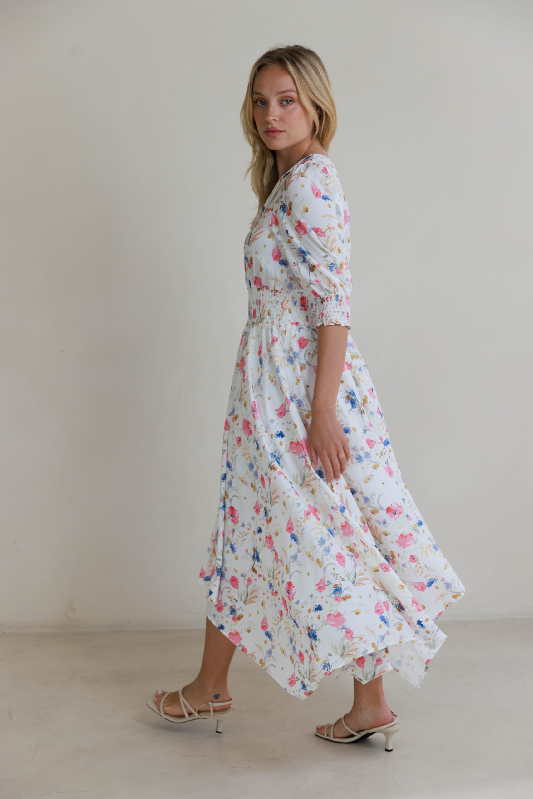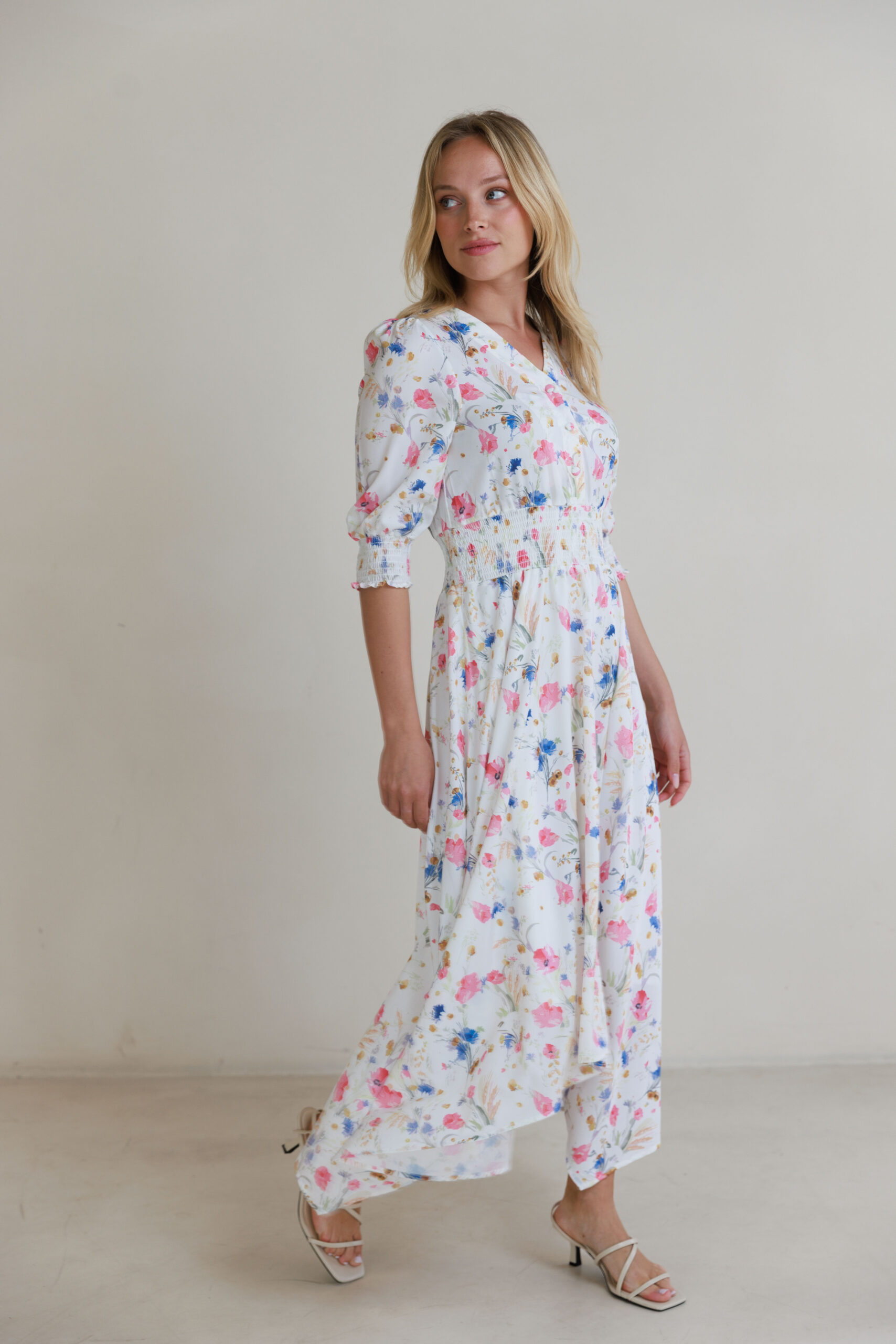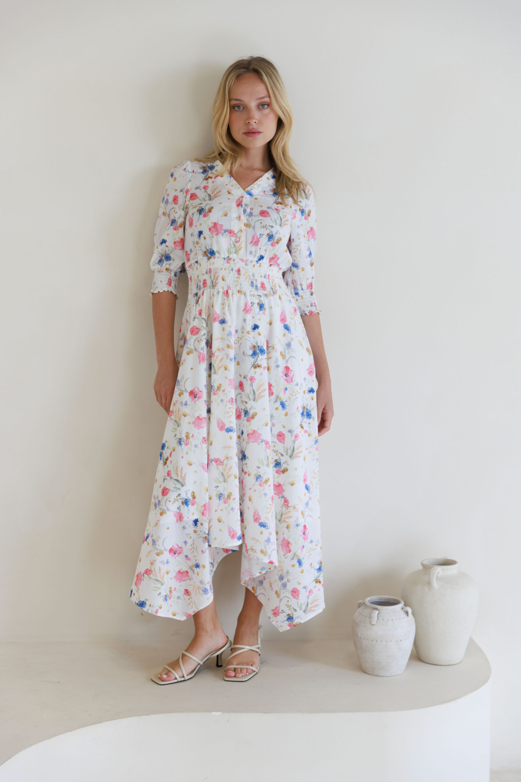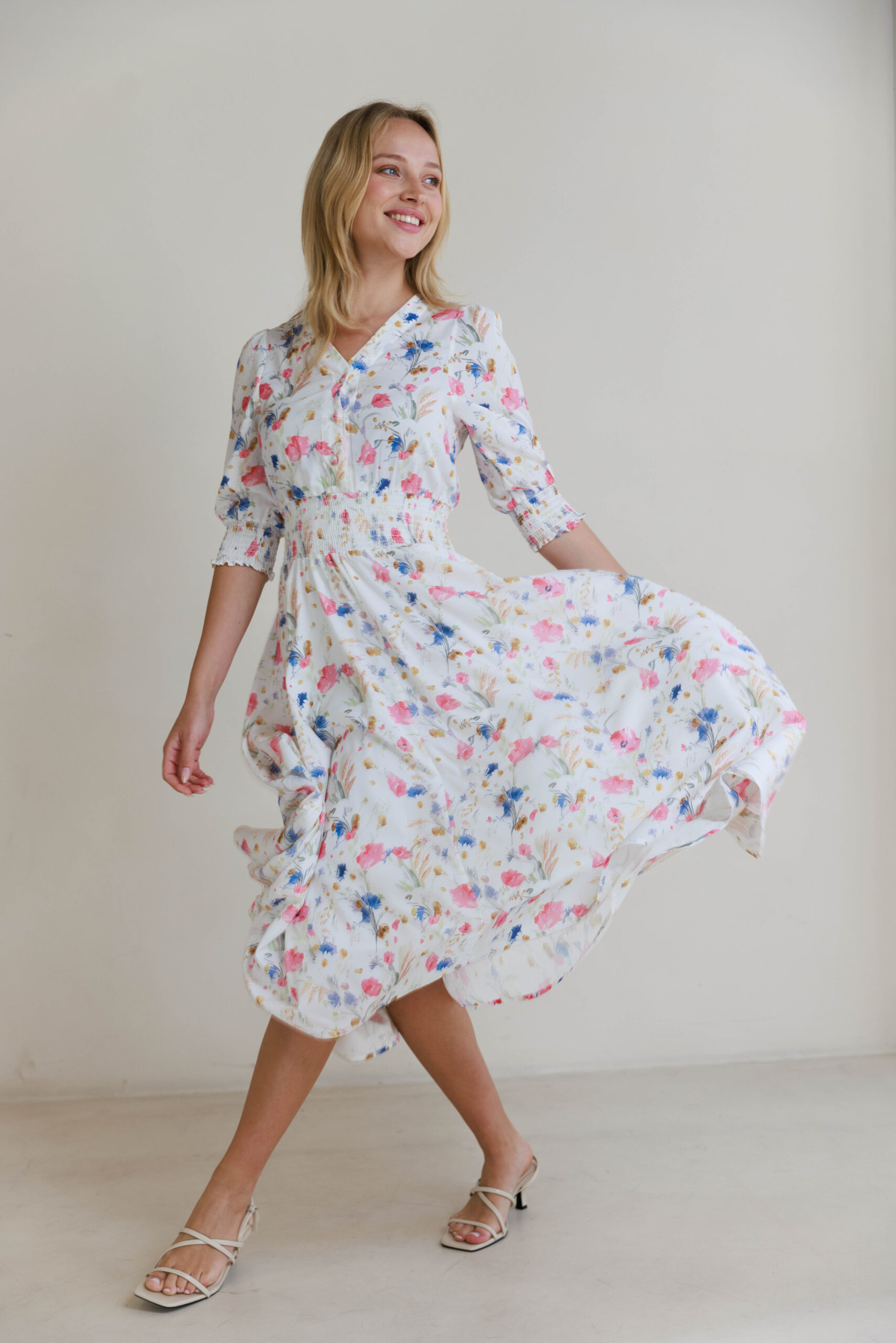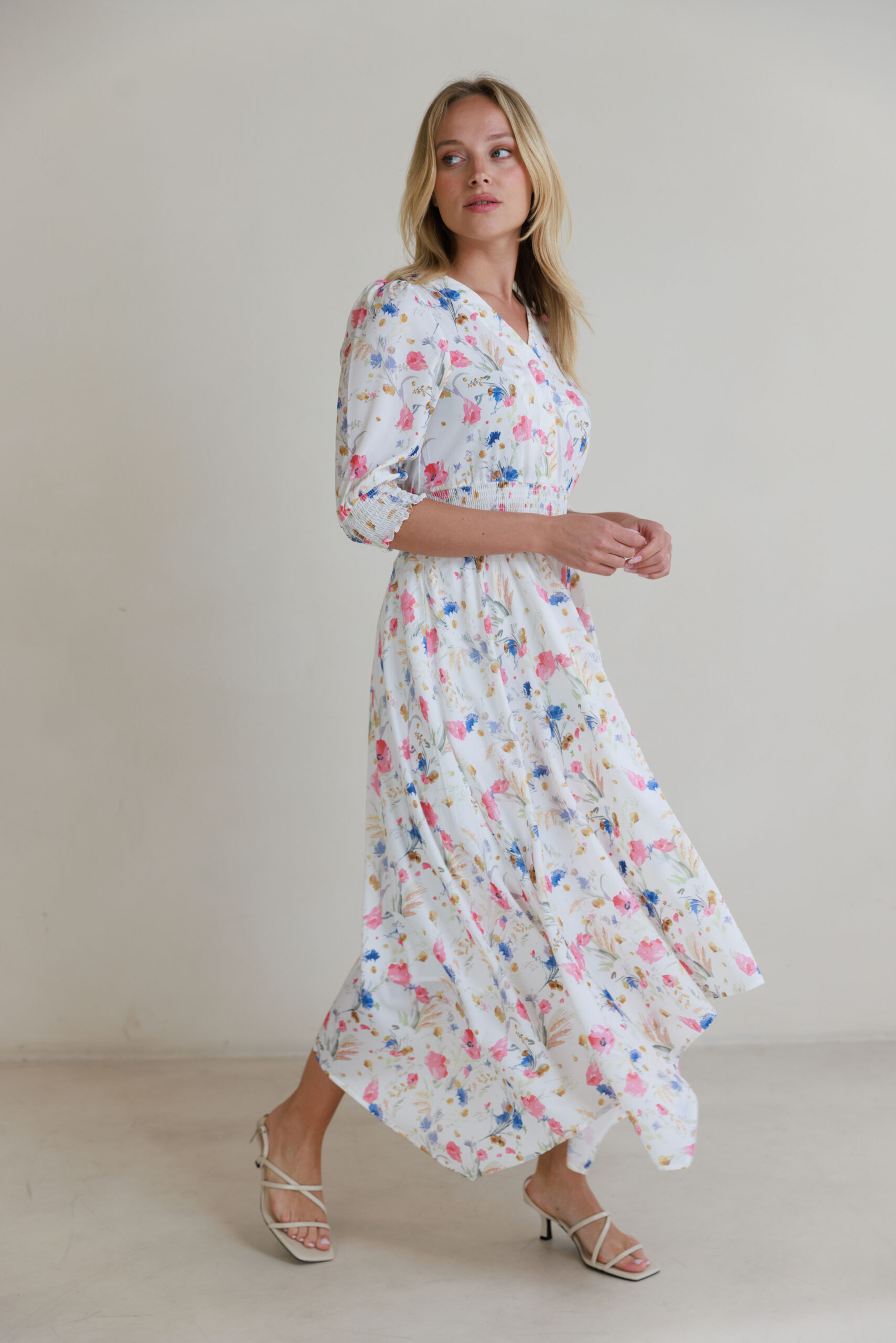 שרוולי 3/4 עם סיומת גומי המוסיפים נפח רך ואלגנטי.
