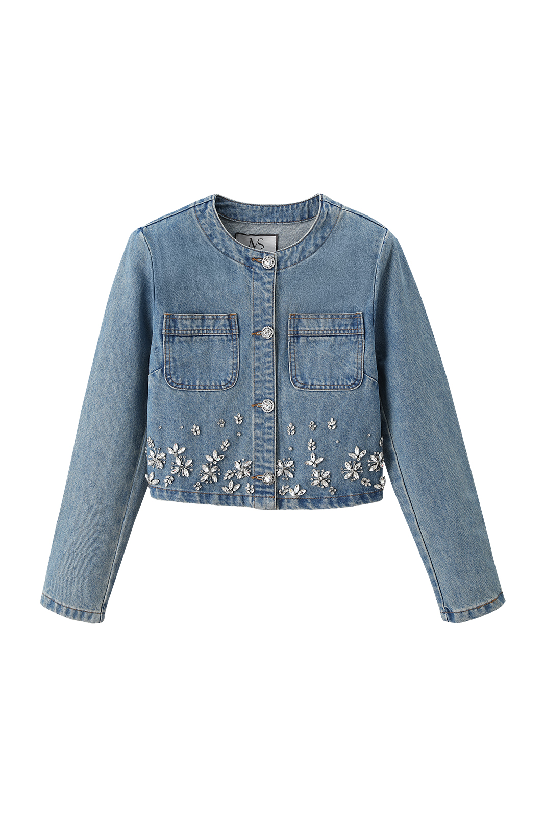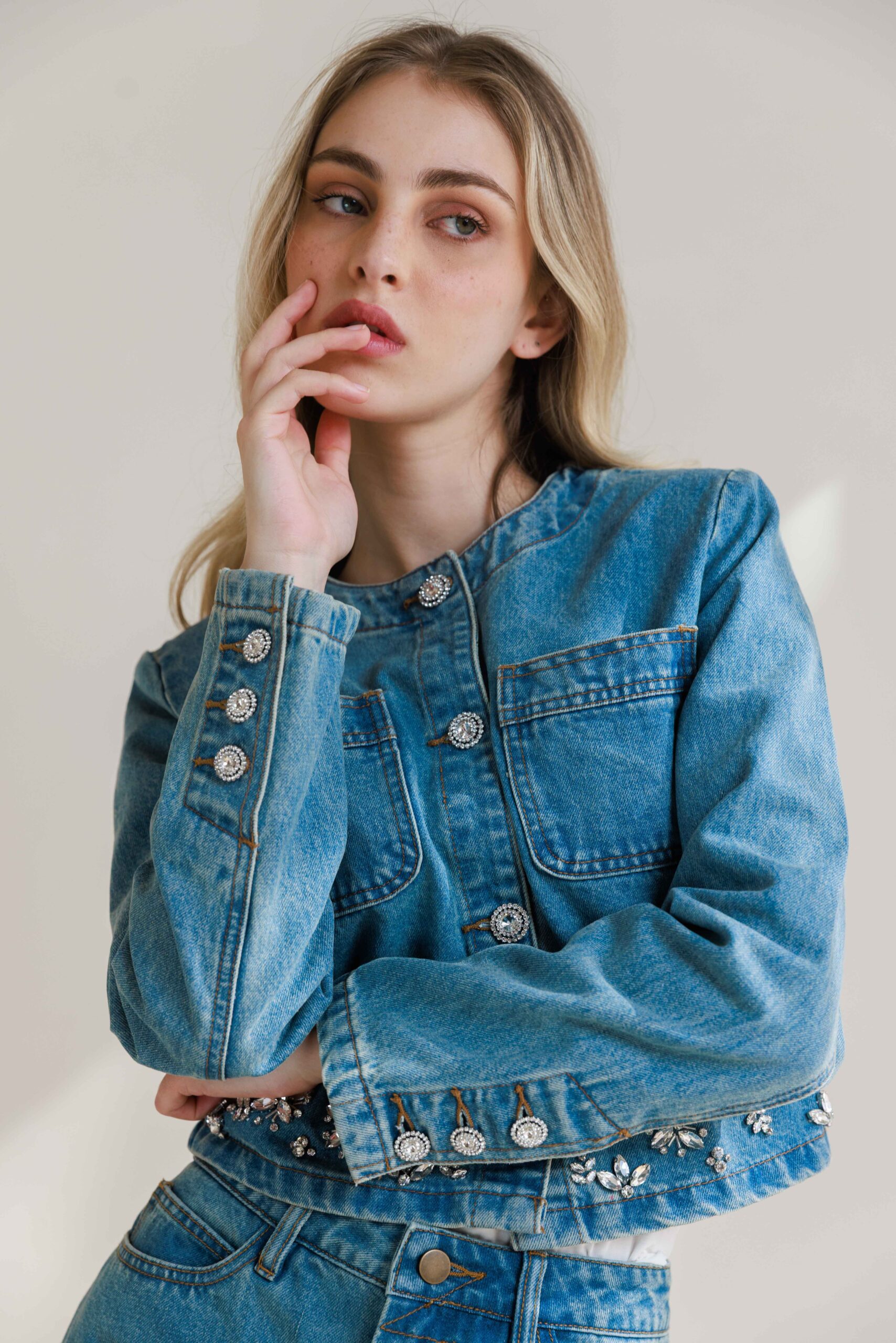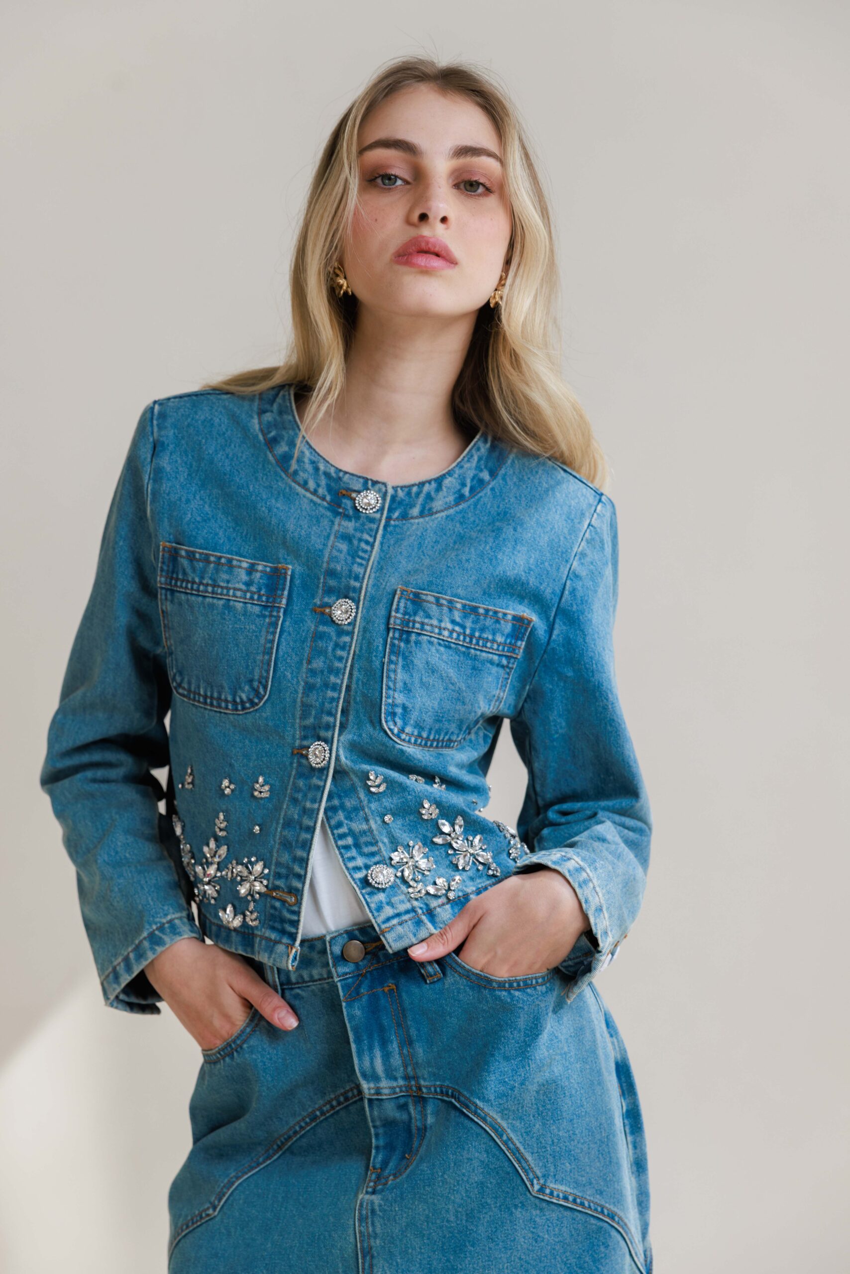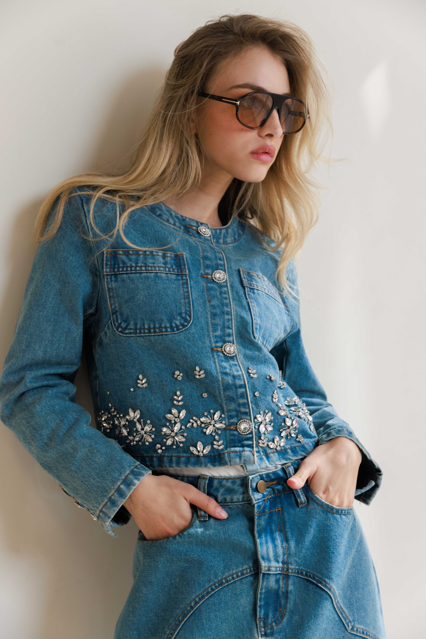 בד קליל בגוון כחול בהיר, עיטורי רקמה עדינה,