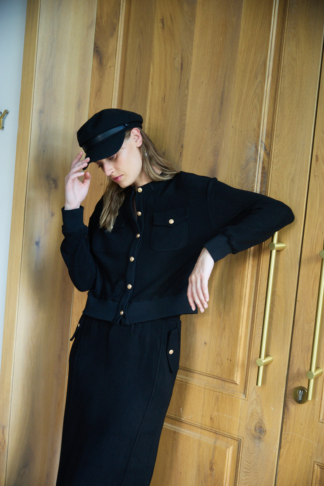 ז’קט קטיפתי עם כפתורי זהב שחור