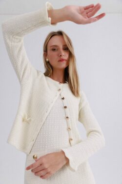 ז’קט עם כפתורי זהב ושרוולי סיומת תלתל