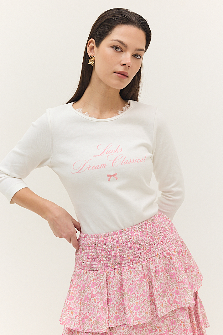 חולצת בייסיק לבן כיתוב ורוד ילדות