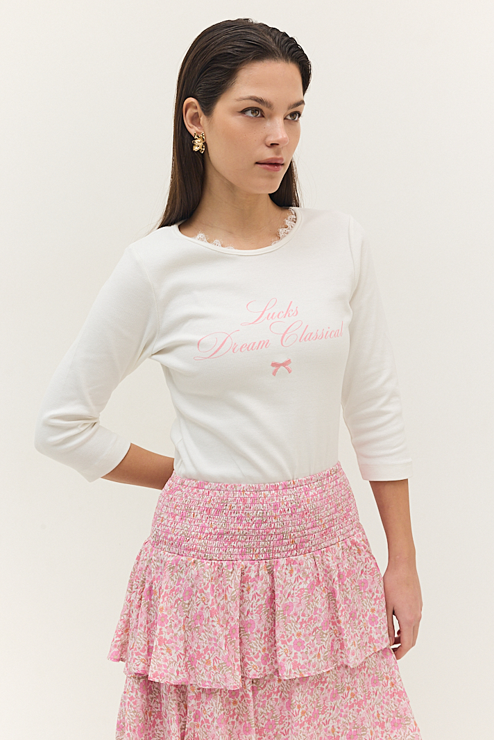 חולצת בייסיק כיתוב ורוד