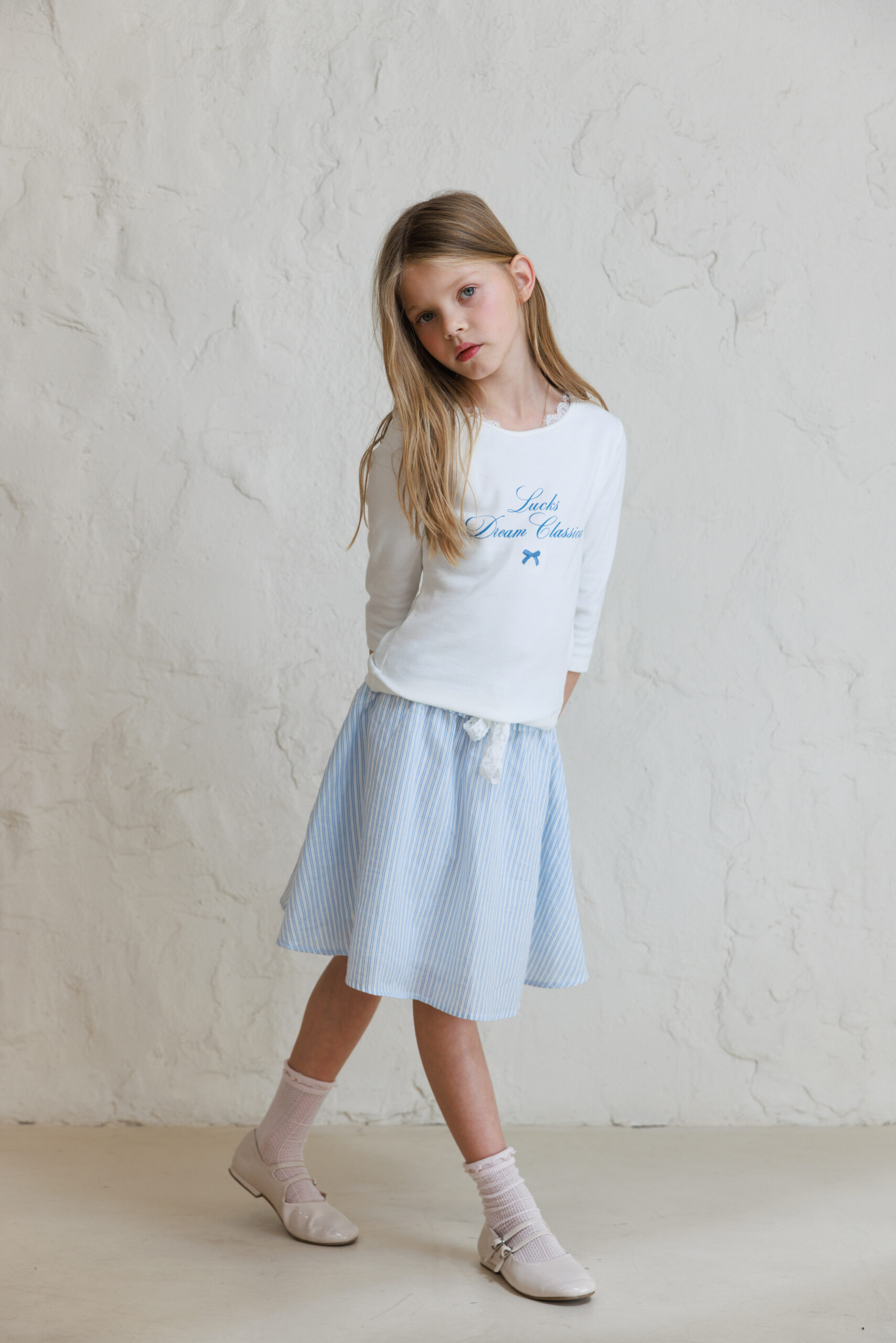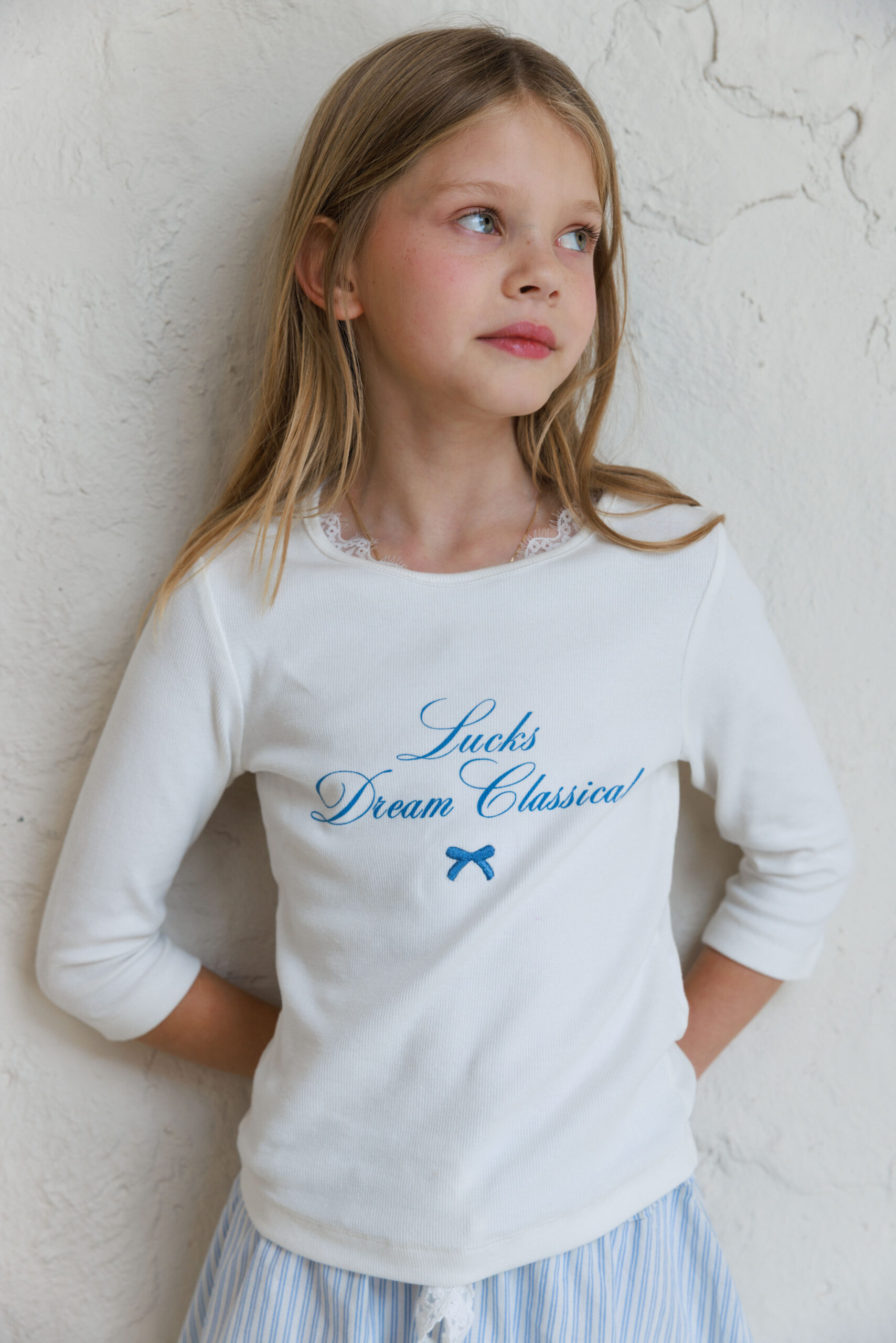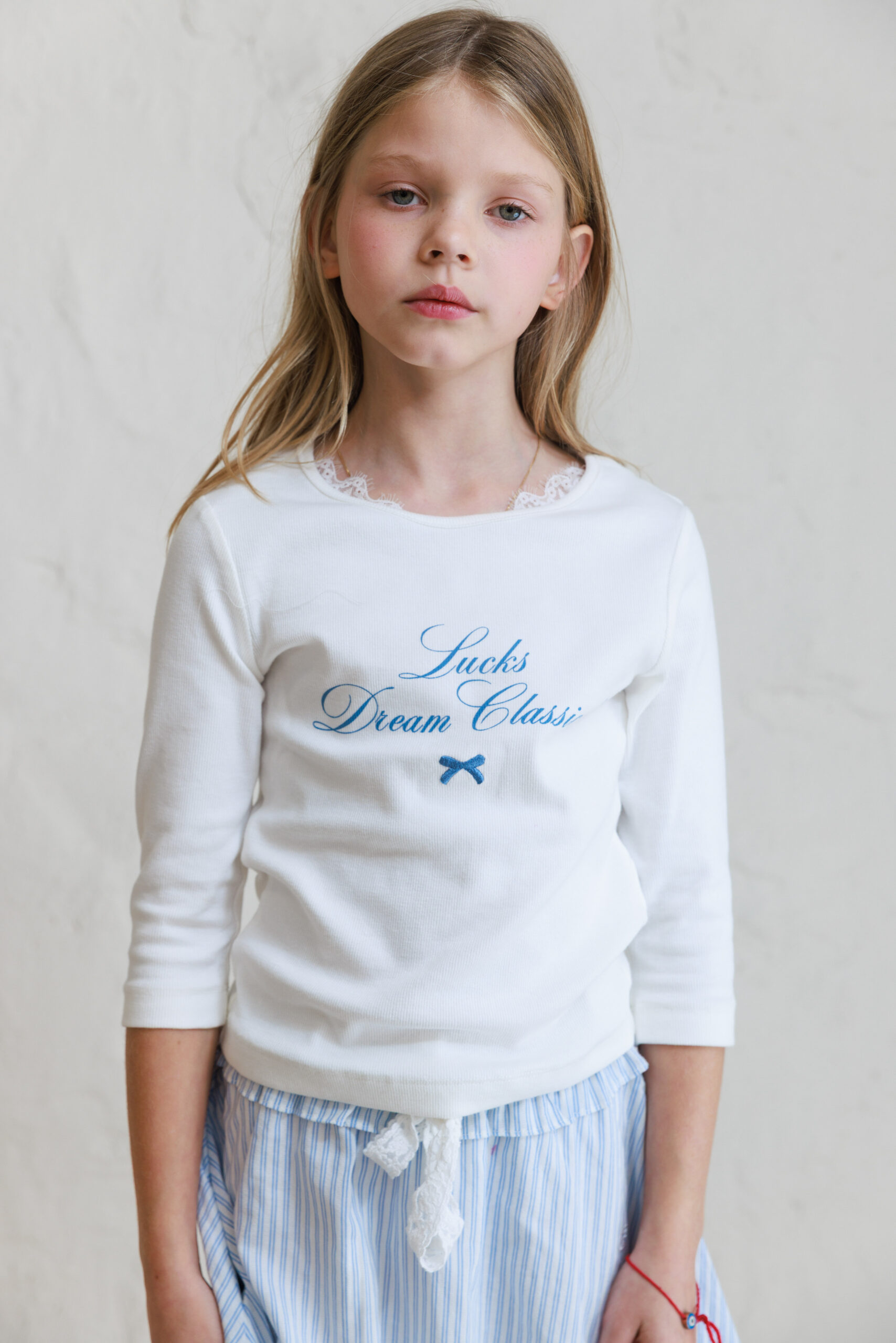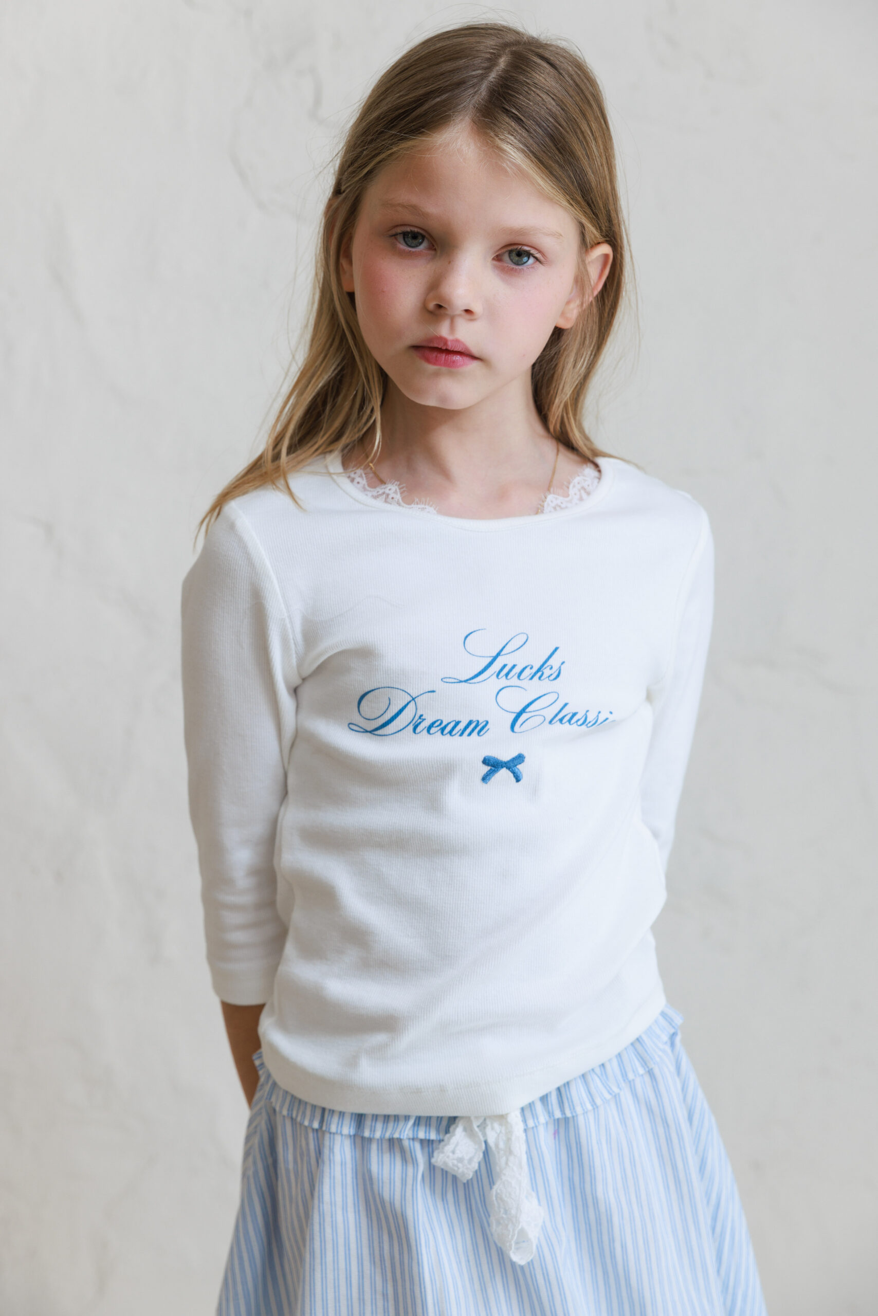 חולצת בייסיק כיתוב תכלת ילדות