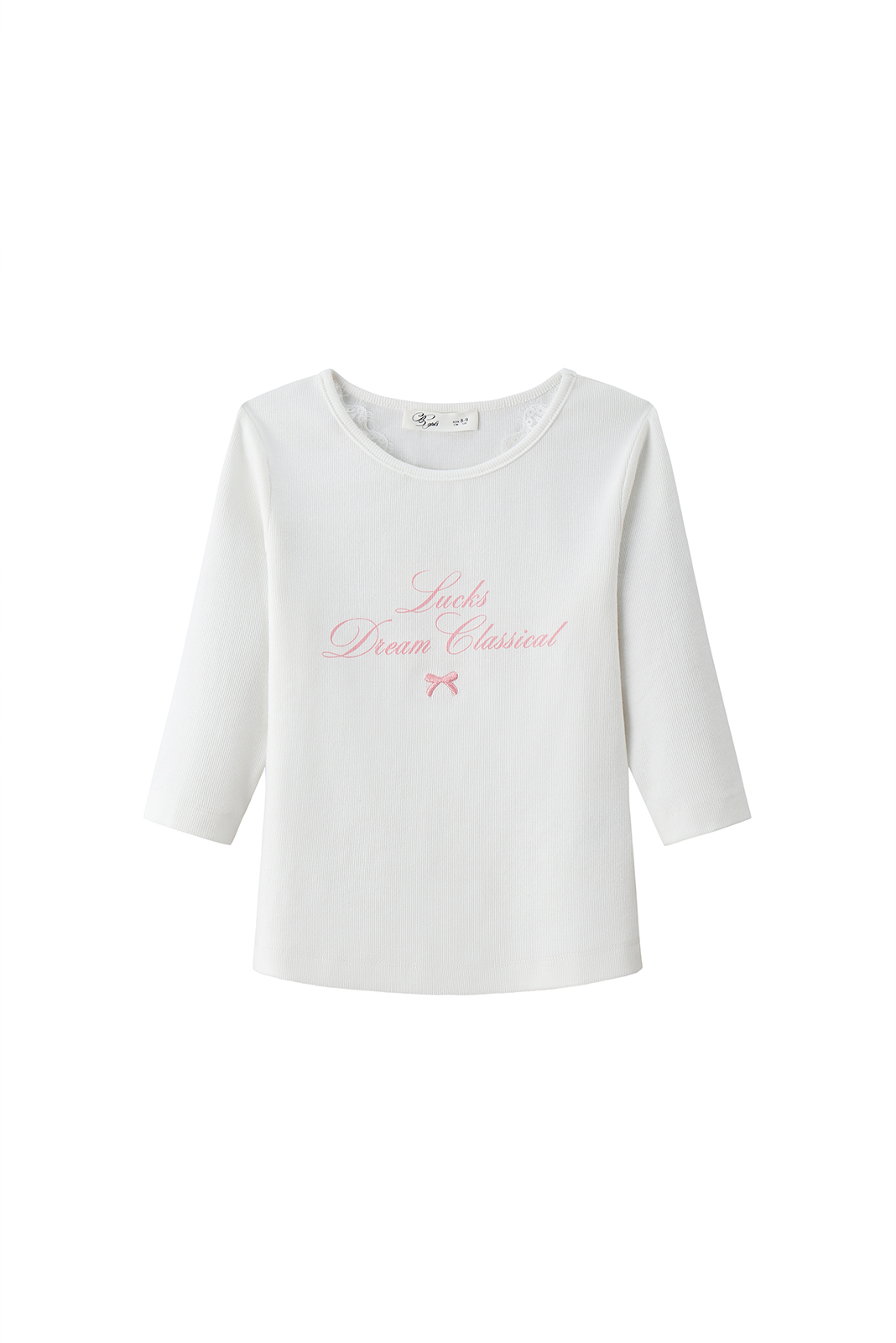 חולצת בייסיק לבן כיתוב ורוד ילדות
