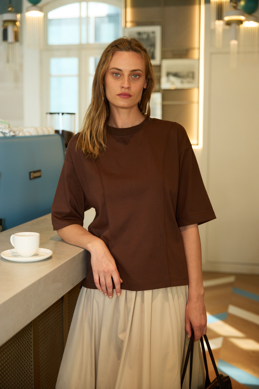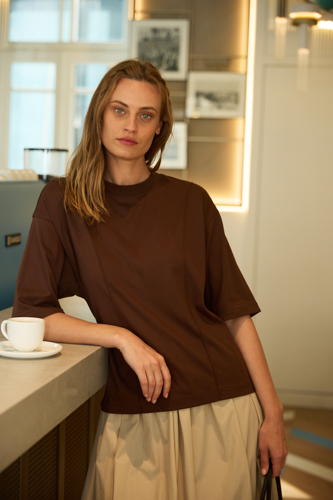 חולצת טי שירט בגזרת אוברסייז עם שרוולים רחבים שמוסיפים טאצ’ מחמיא ומשוחרר