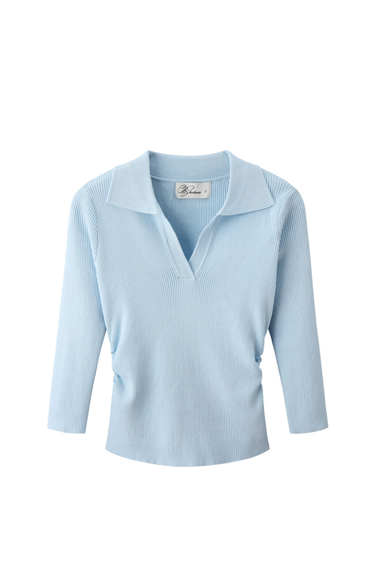 עם שרוולים באורך 3/4 ומפתח וי עם צווארון.
