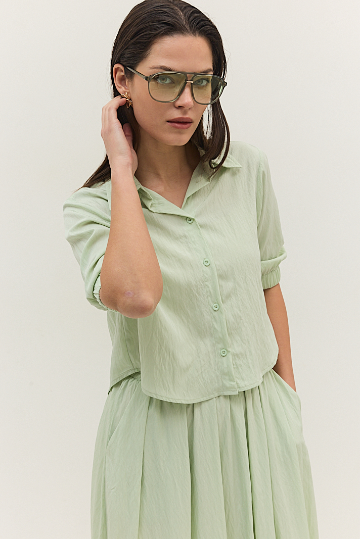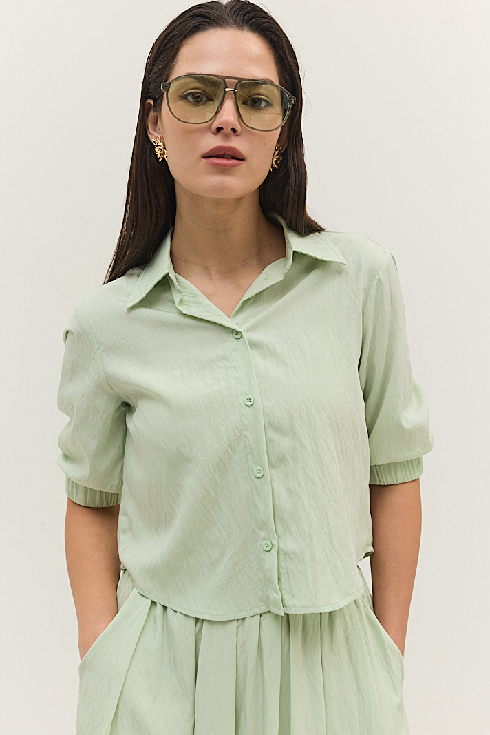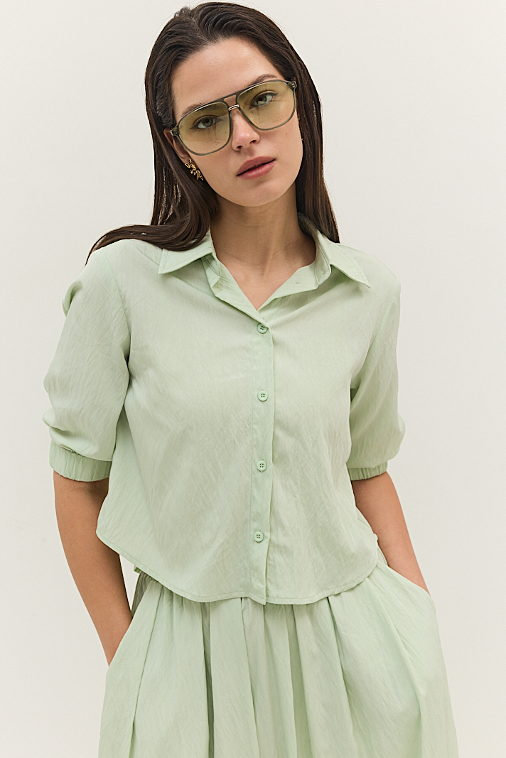 חולצה מבד קליל עם שרוולים תפוחים וסיומת גומי עדינה.