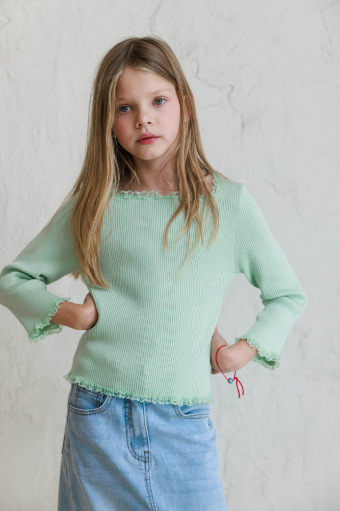 סיומת תלתל  גם בשרוולים שמוסיפה טאץ’ ייחודי לחולצה.