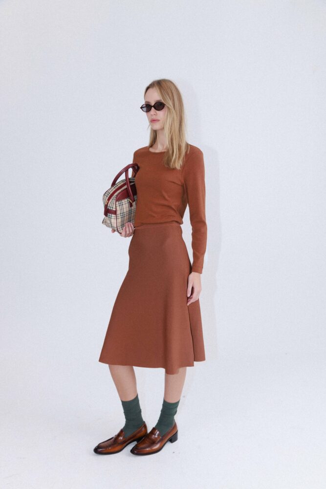 חצאית בייסיק מבד סריג בגזרת A מתרחבת,
