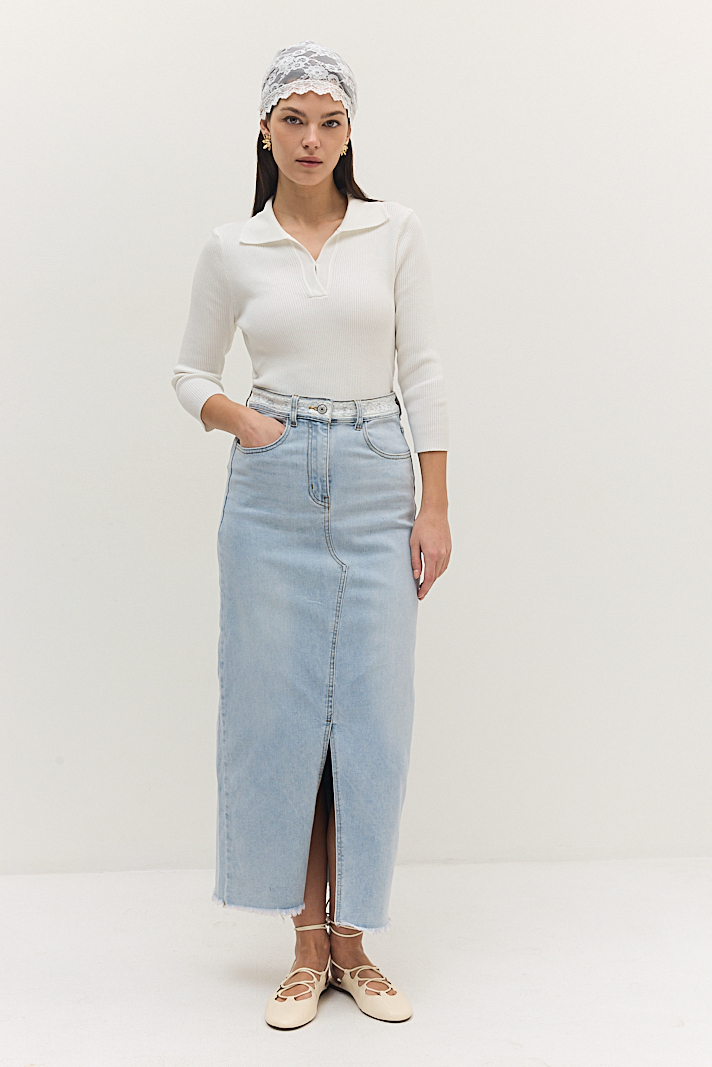 חצאית ג’ינס עם שסע ג’ינס