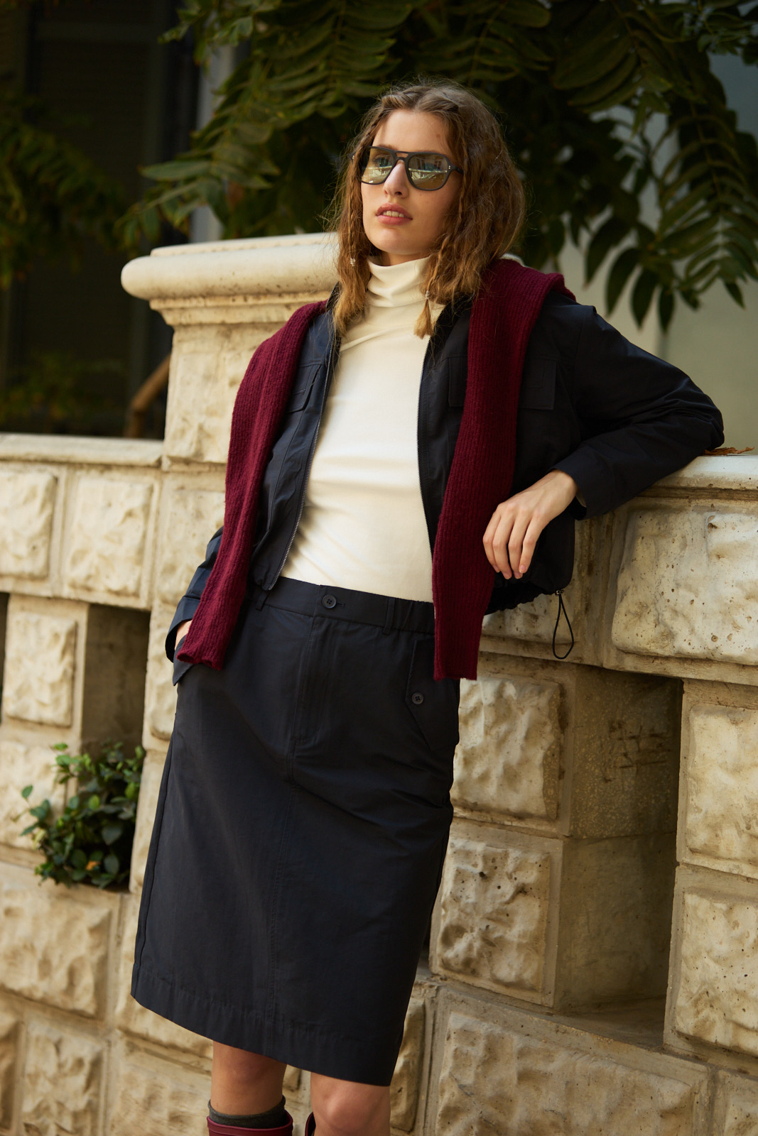 חצאית כיסים מחויטת נייבי