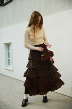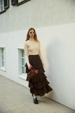 חצאית מקסי עם וולאנים חום