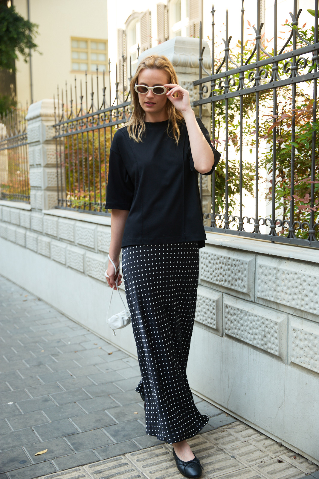 חצאית סאטן מנוקד שחור