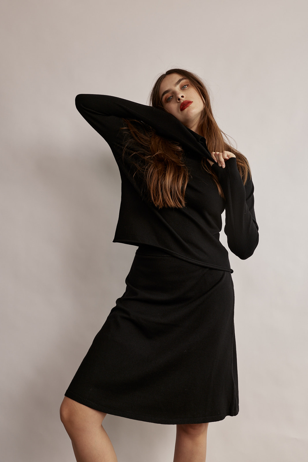 חצאית סריג בגזרת A נוחה, מחמיאה ונשית.
