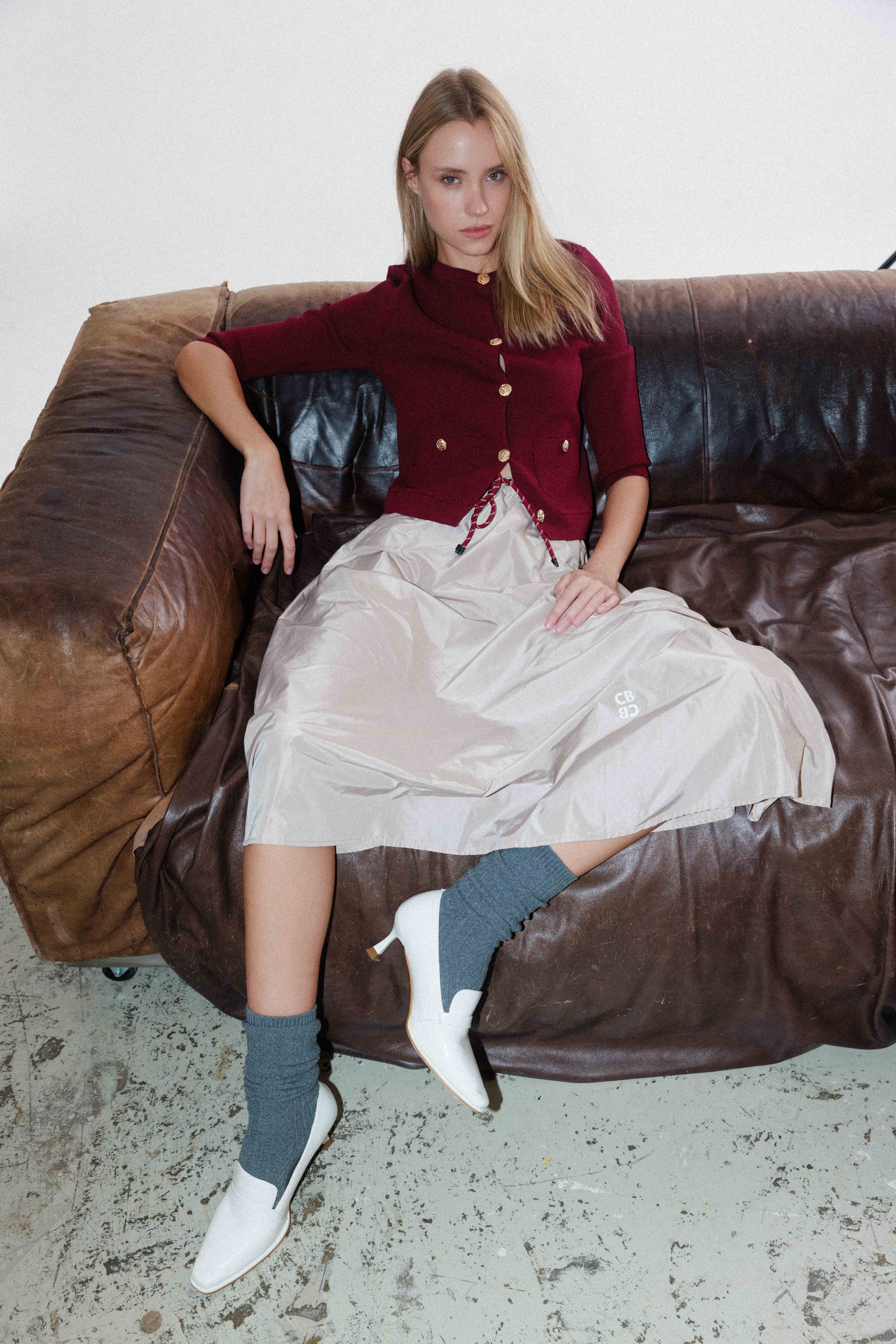 חצאית סריג לבנה