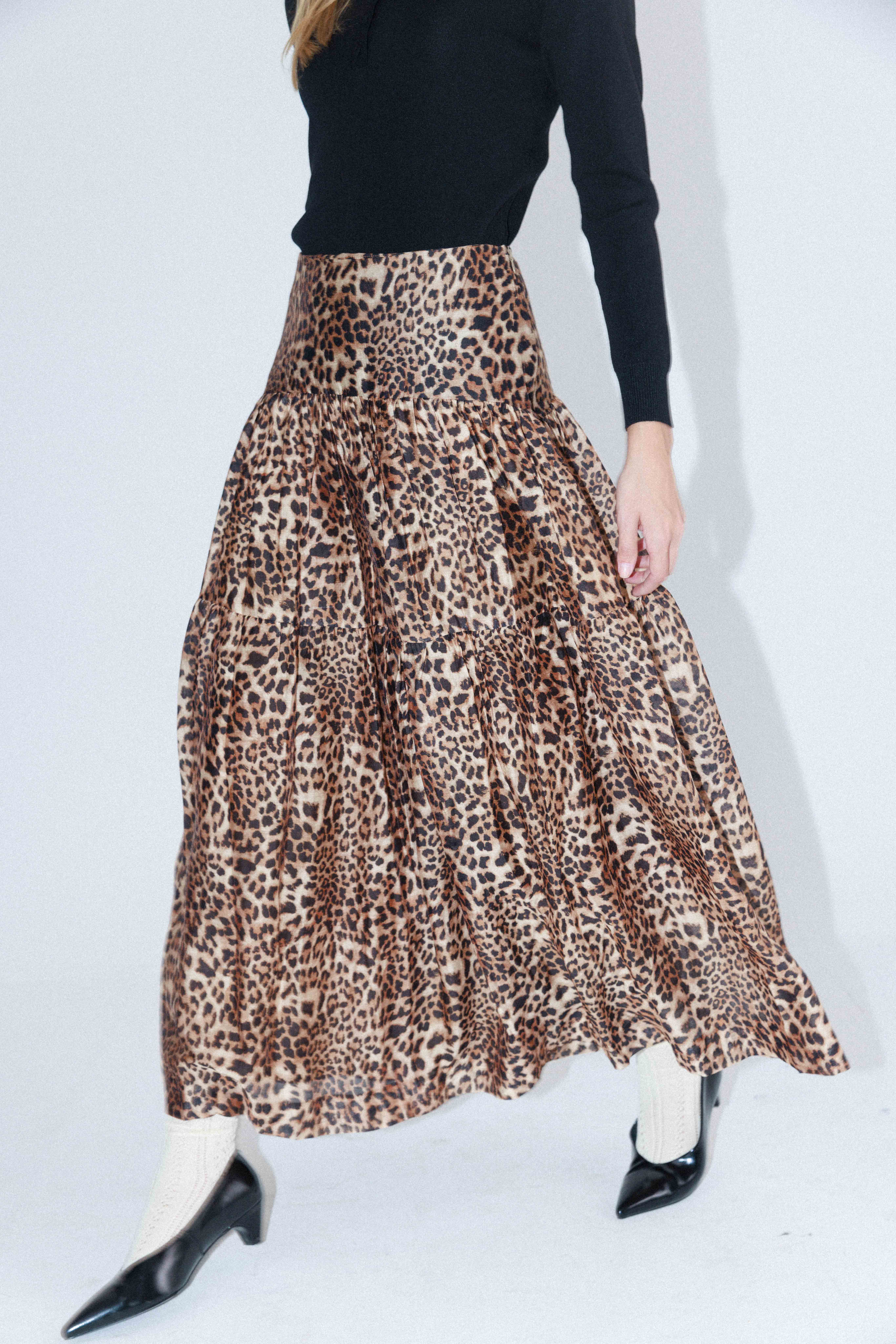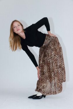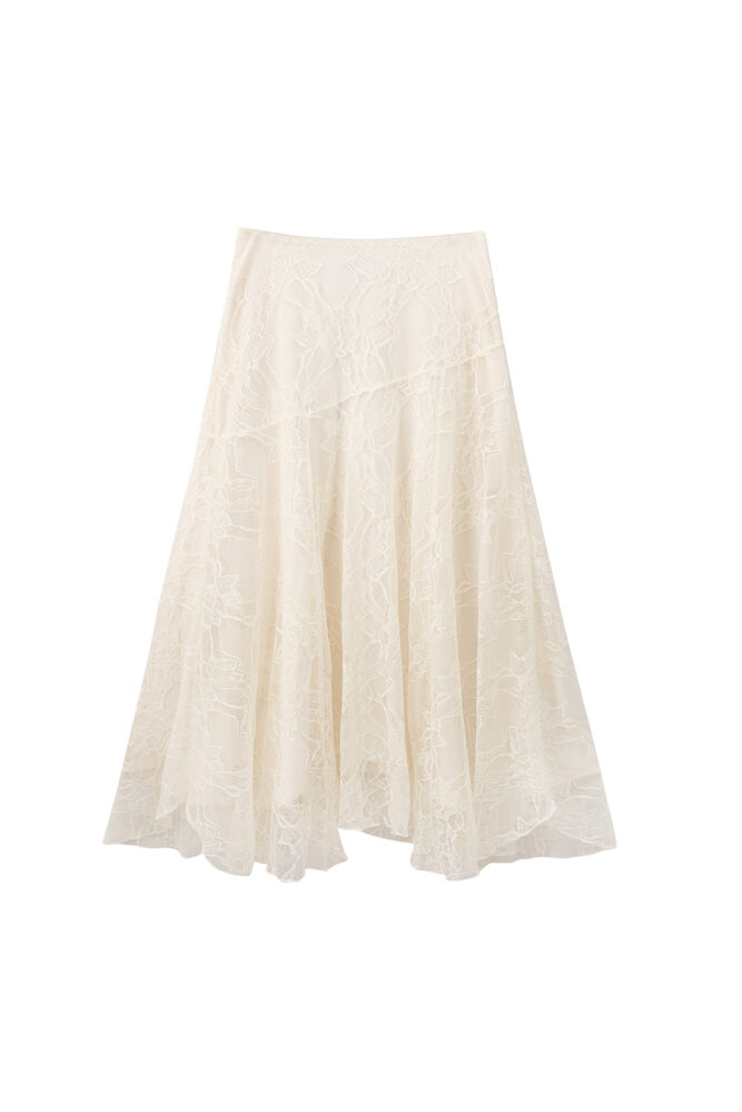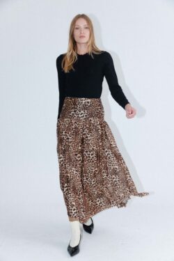 חצאית מידי בגזרת קומות מבד נעים עם הדפס פרחוני אלגנטי