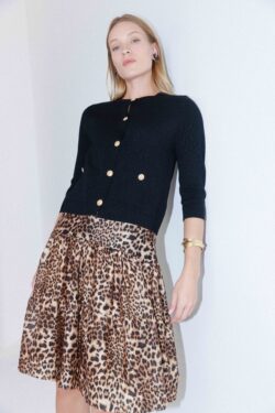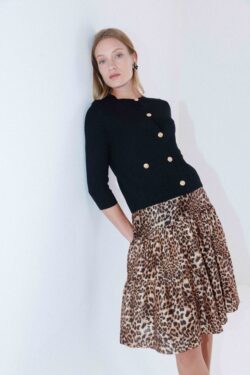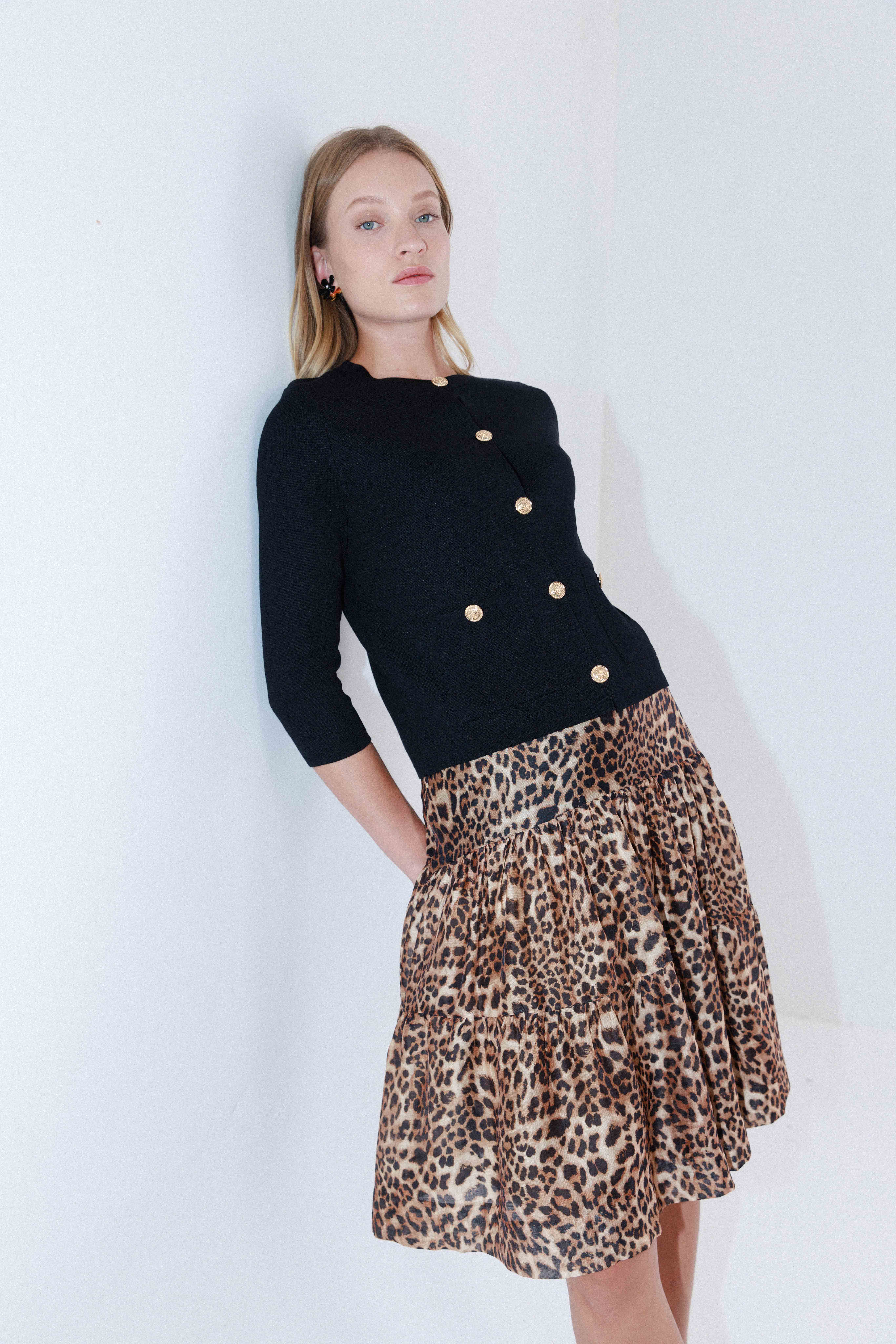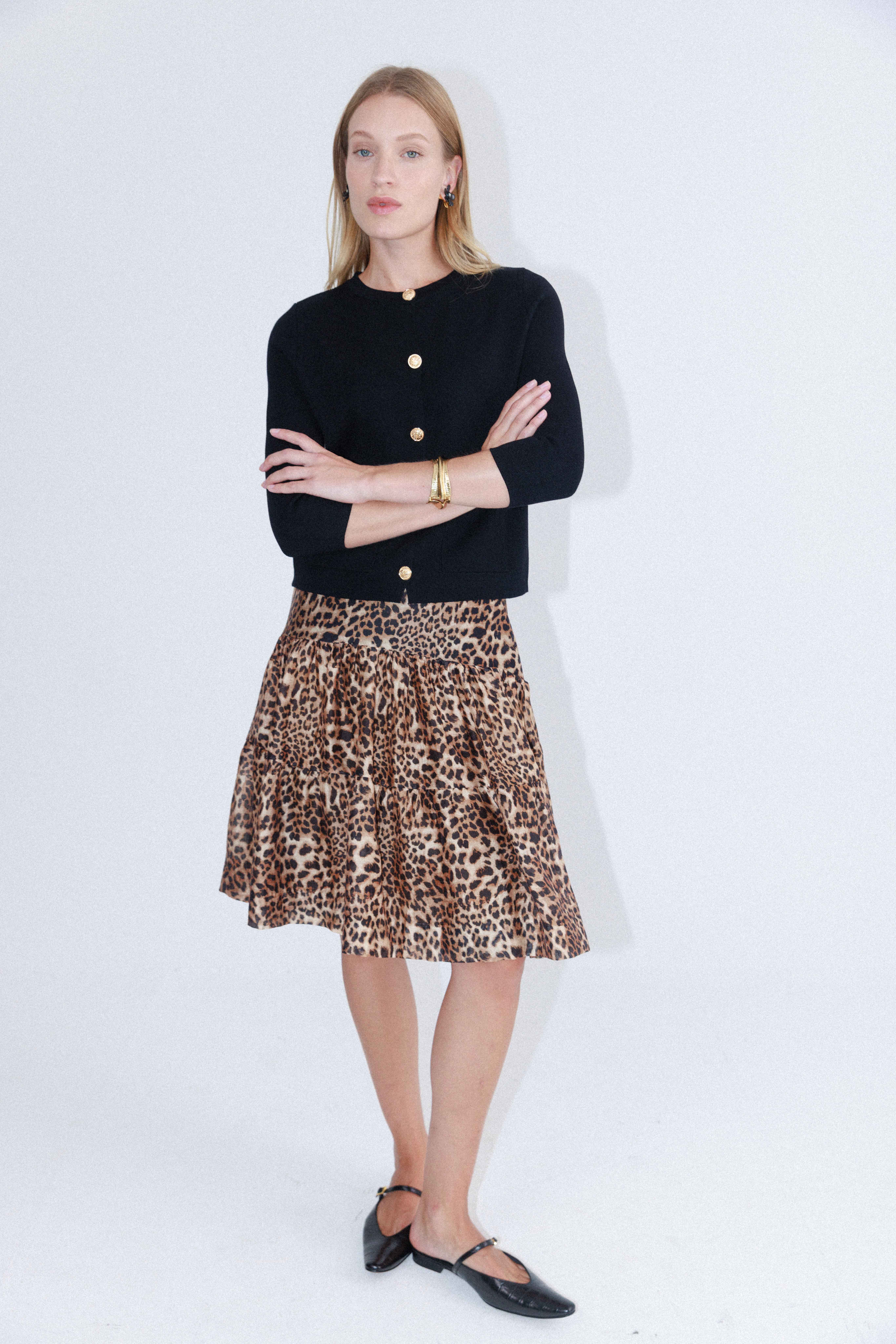 חצאית בגזרת קומות מבד נעים עם הדפס מנומר