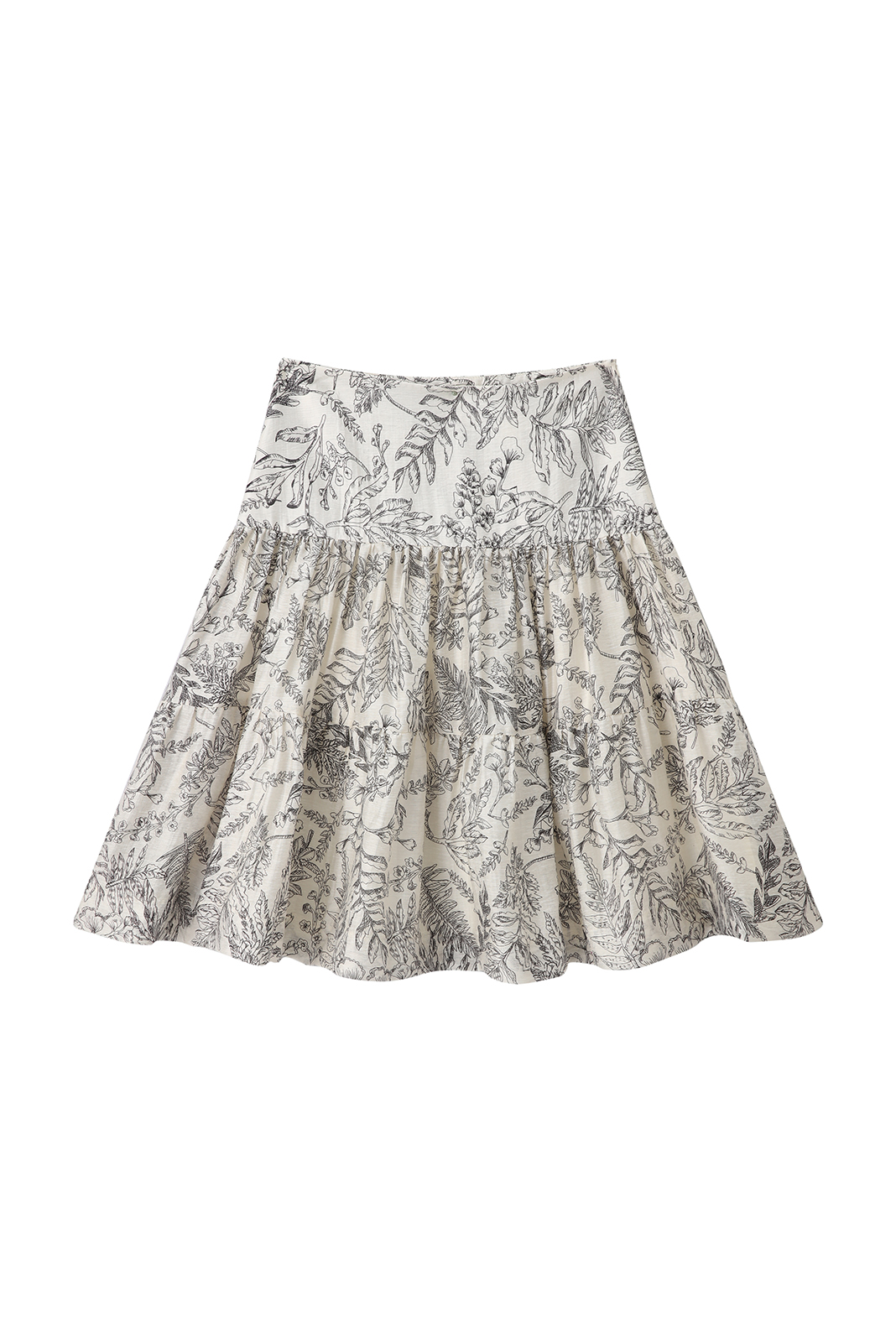 חצאית בגזרת קומות מבד נעים עם הדפס פרחוני שחור