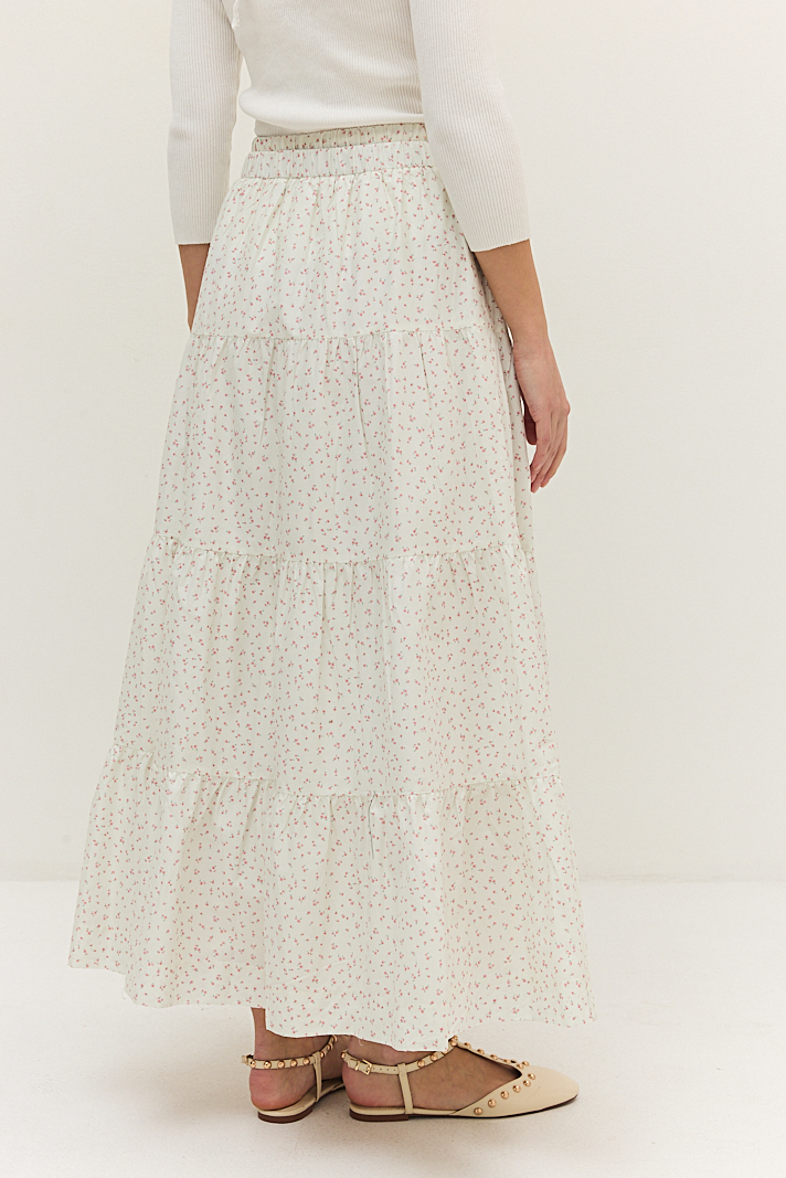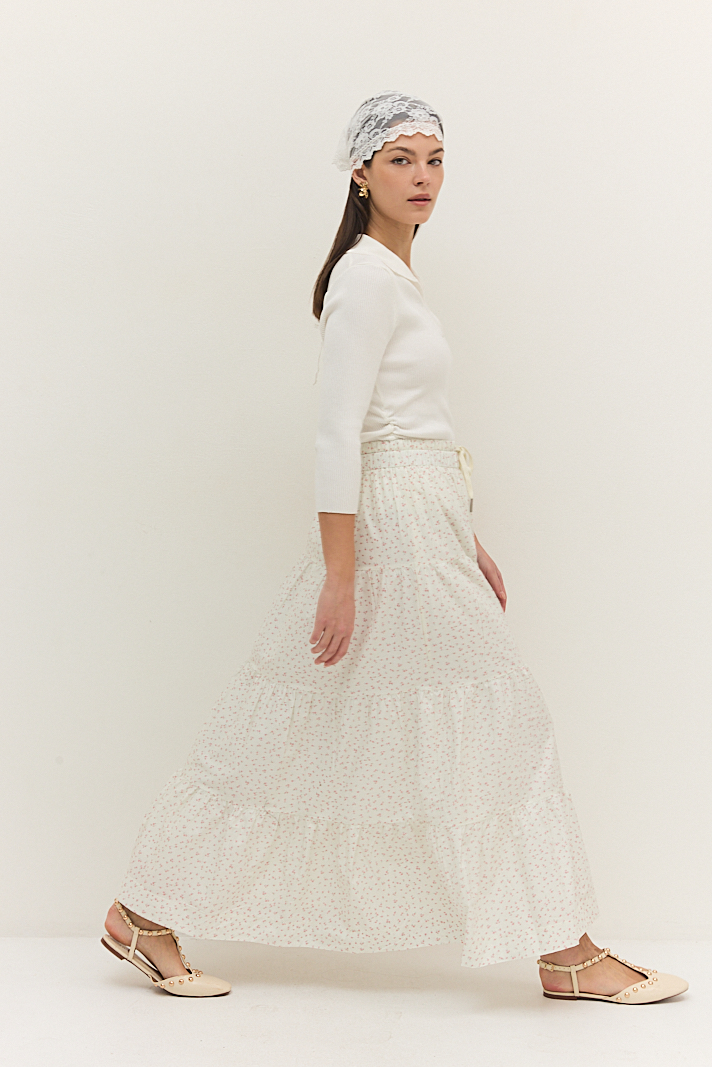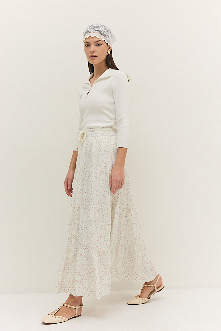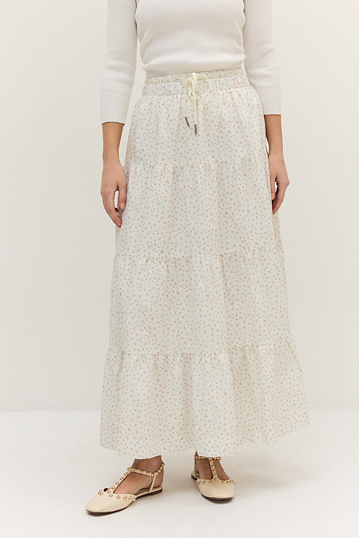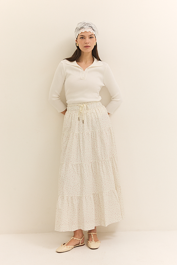 חצאית בגזרת קומות מתרחבת, עשויה בד נעים קליל ונושם.