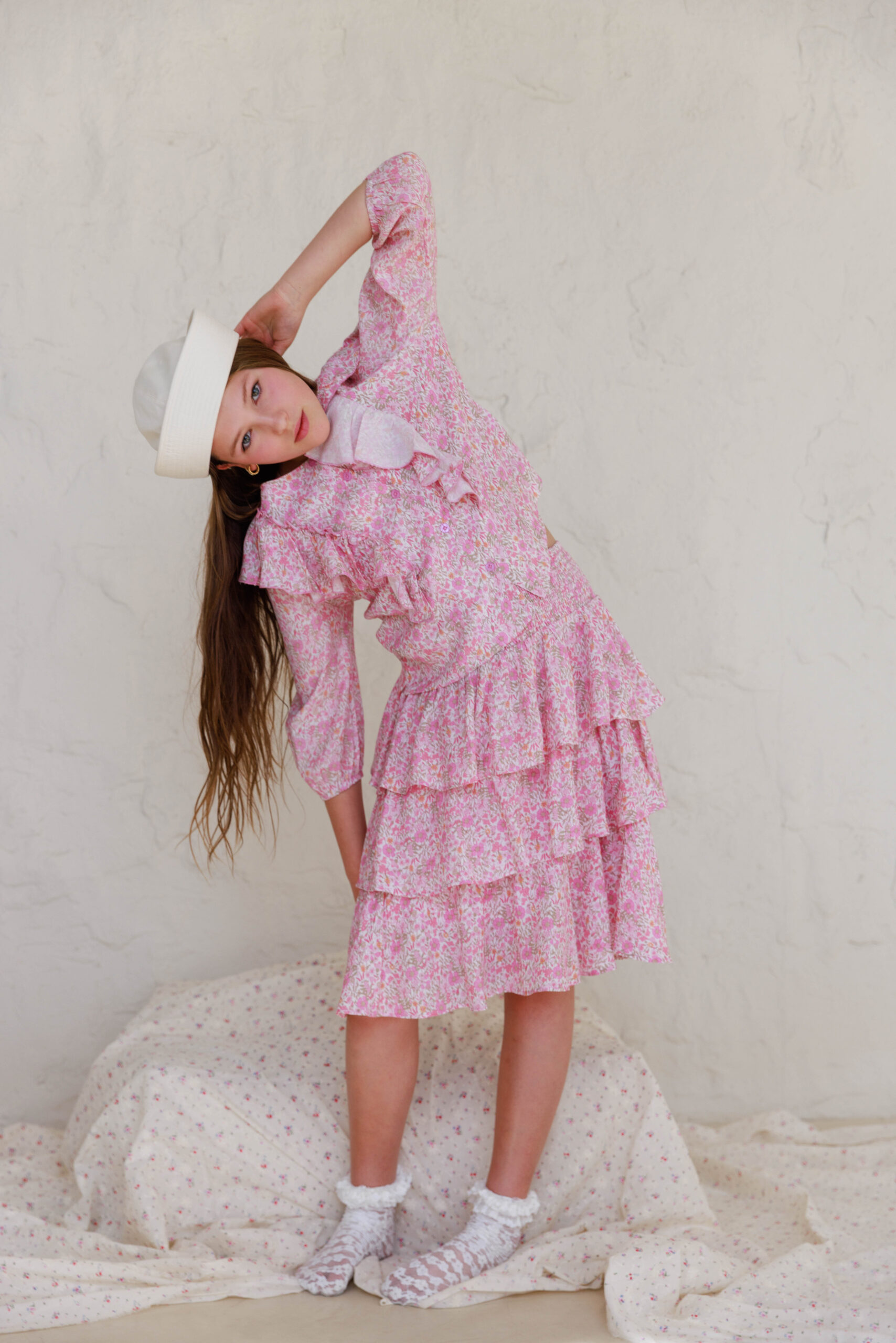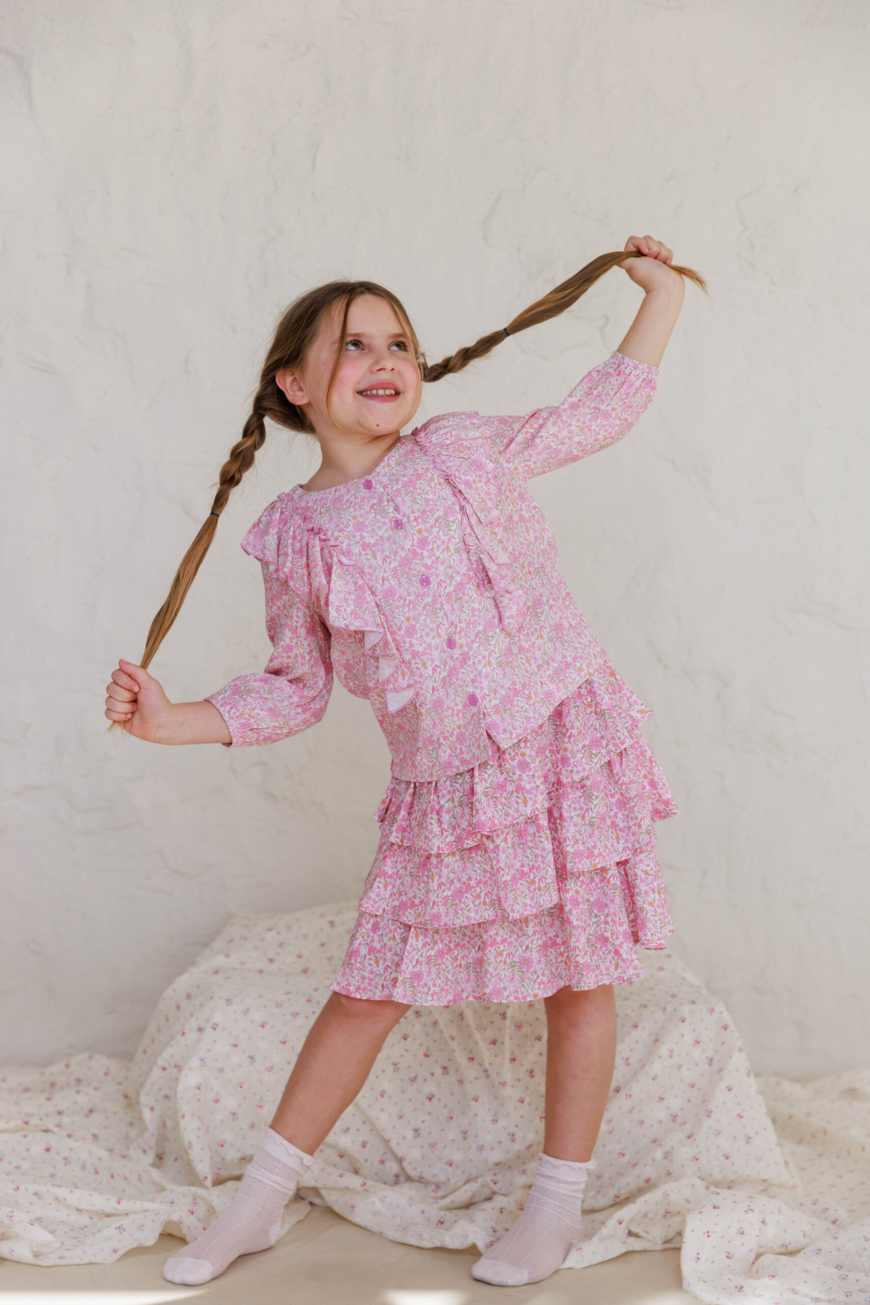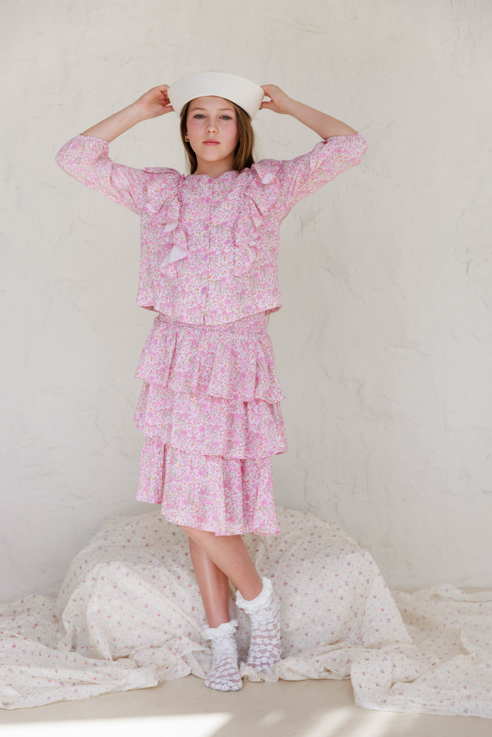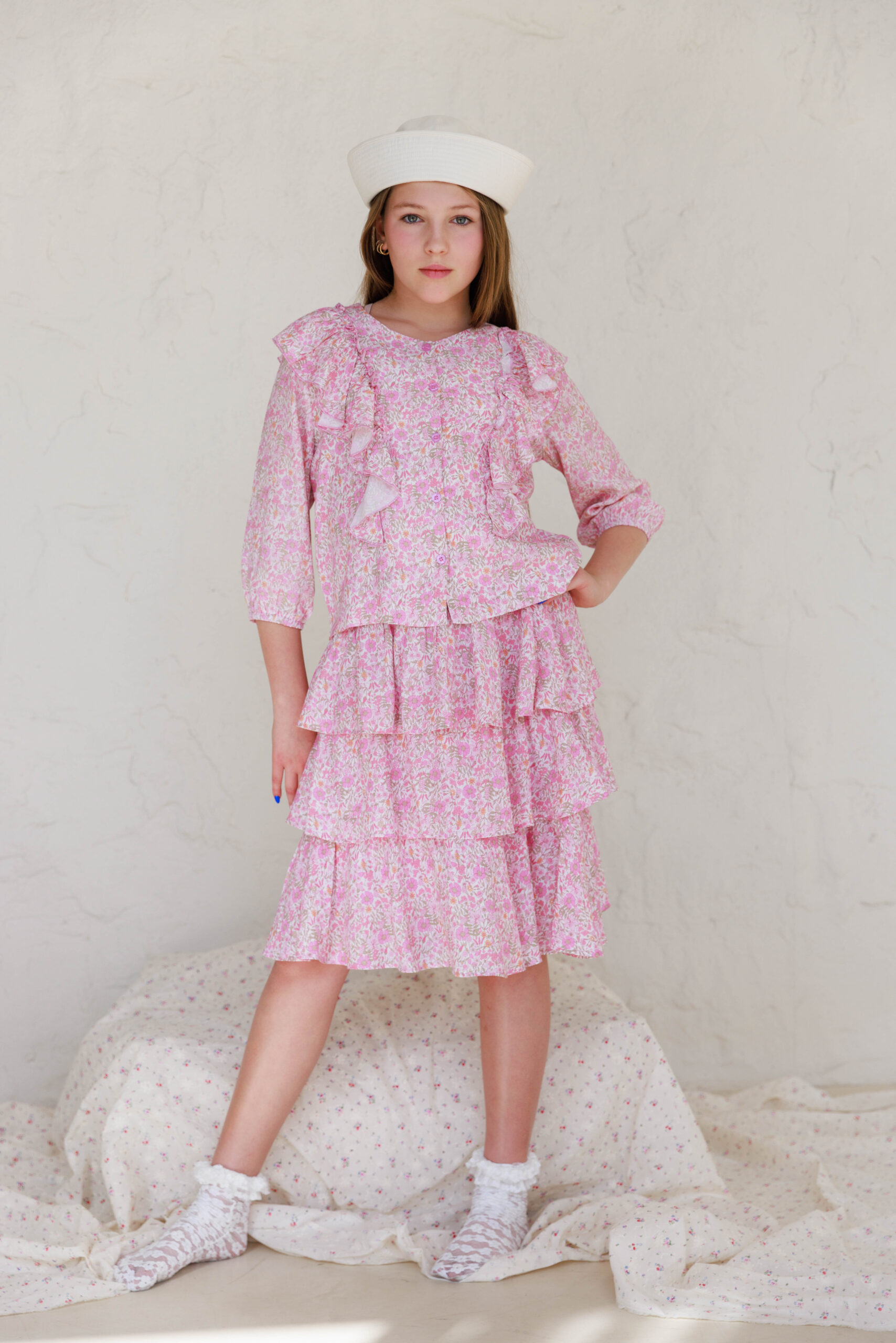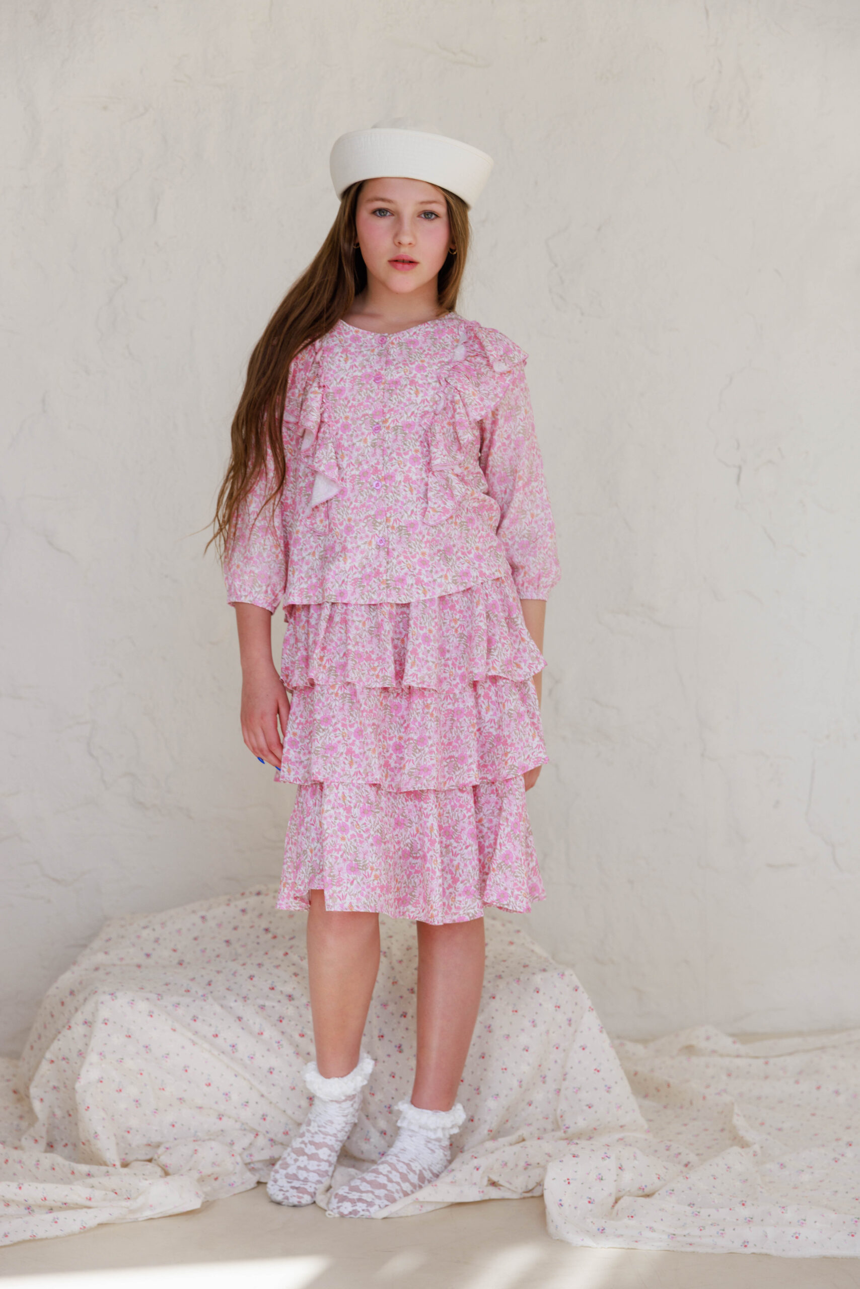 • הדוגמנית הילדה לובשת מידה 7-8