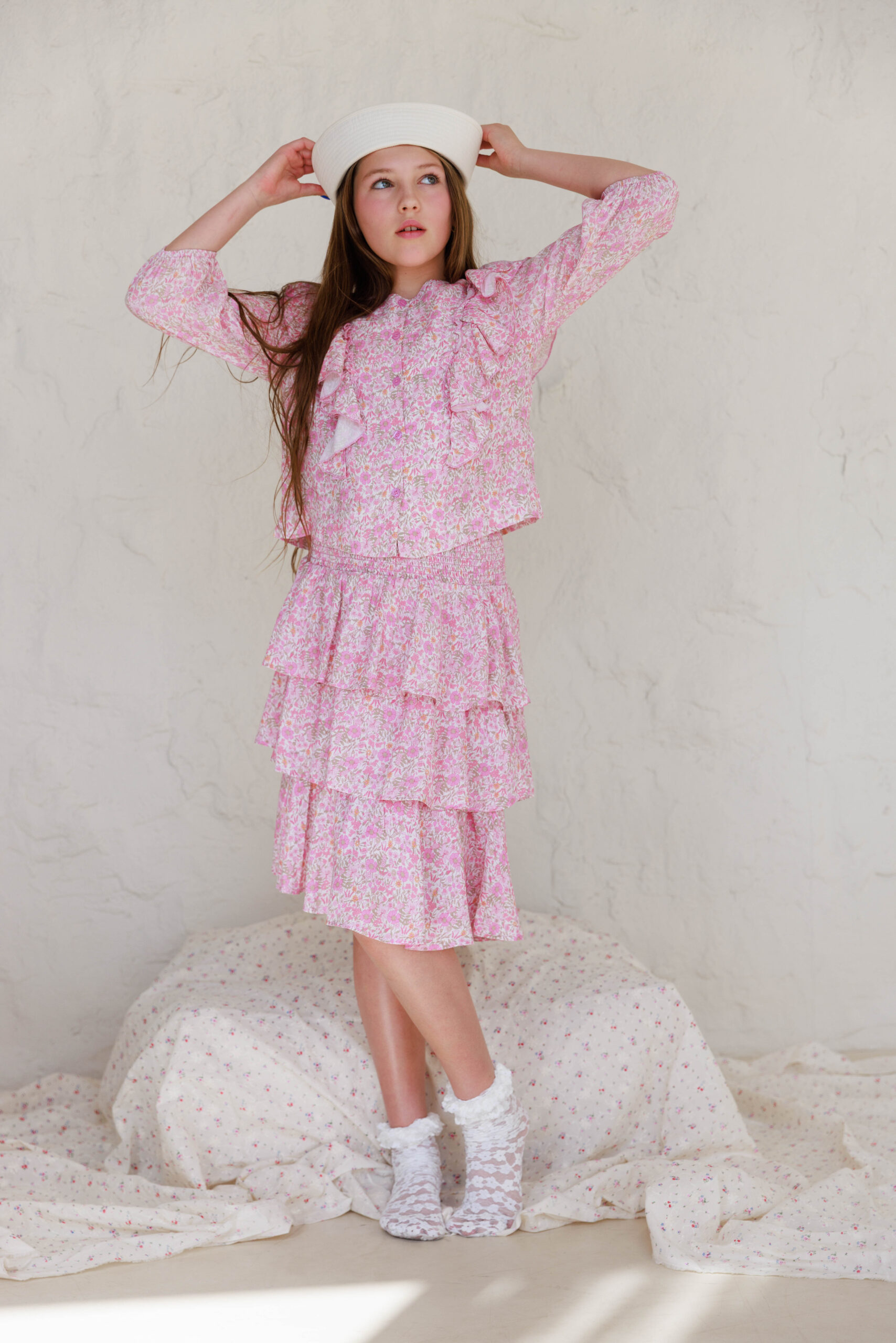 חצאית קומות פרחונית לבן ילדות