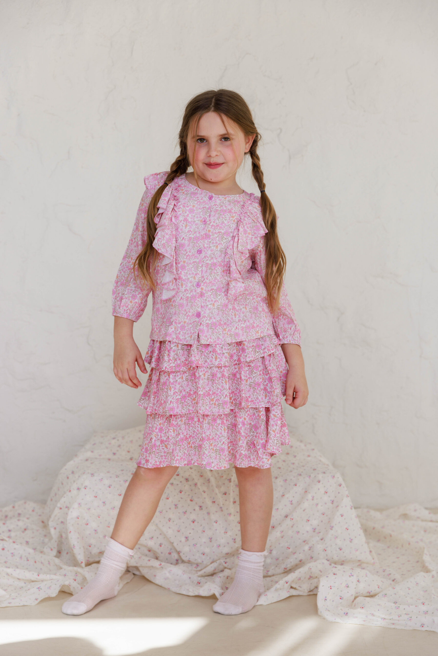 חצאית קומות פרחונית ורוד ילדות