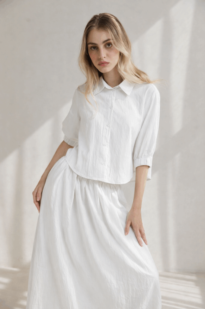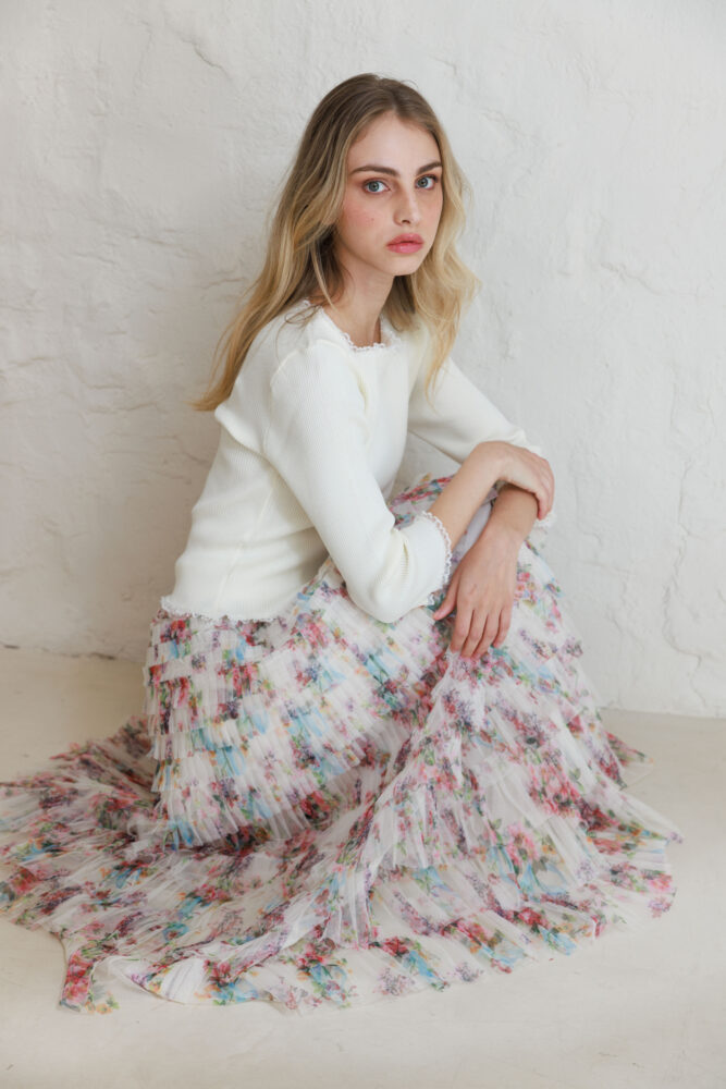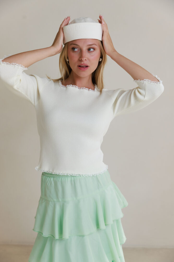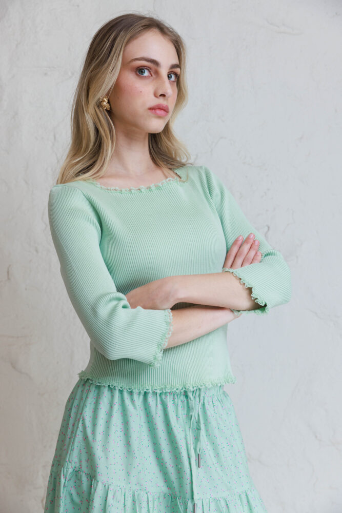 סיומת תלתל גם בשרוולים שמוסיפה טאץ’ ייחודי לחולצה..
