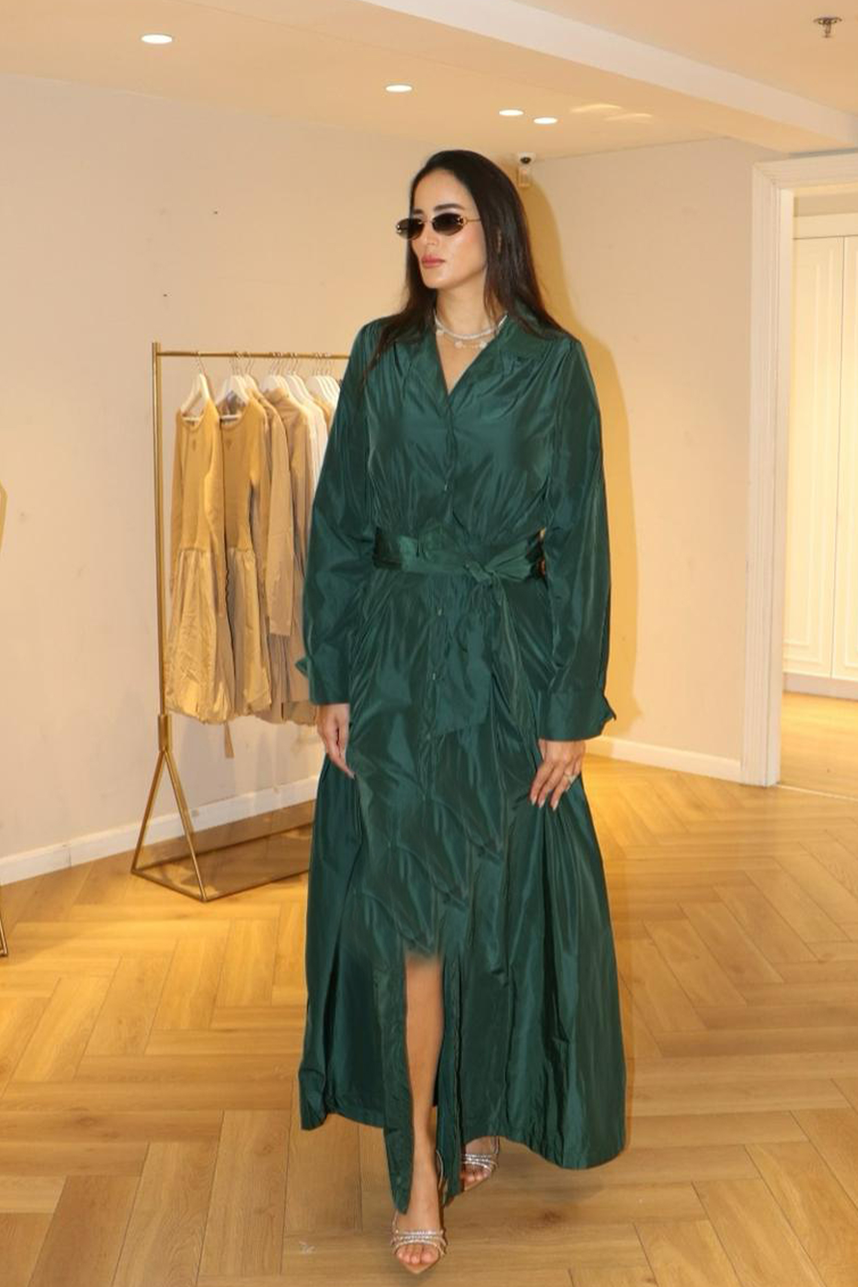 שמלה אלגנטית MS מכופתרת ירוק מקסי