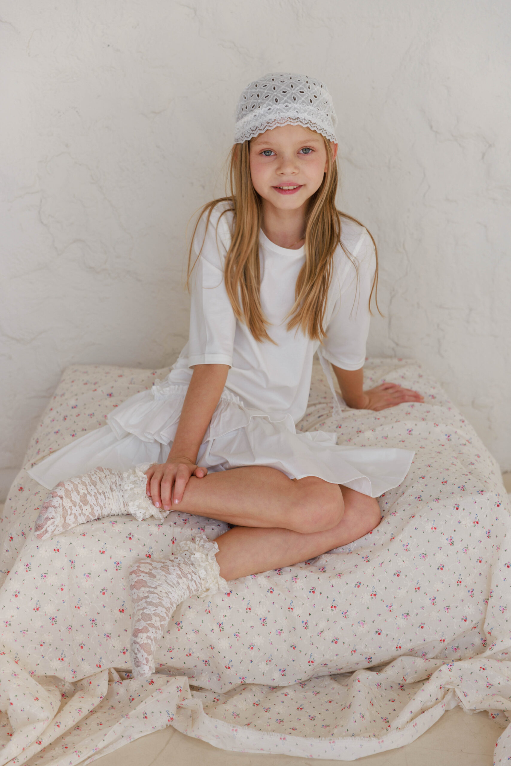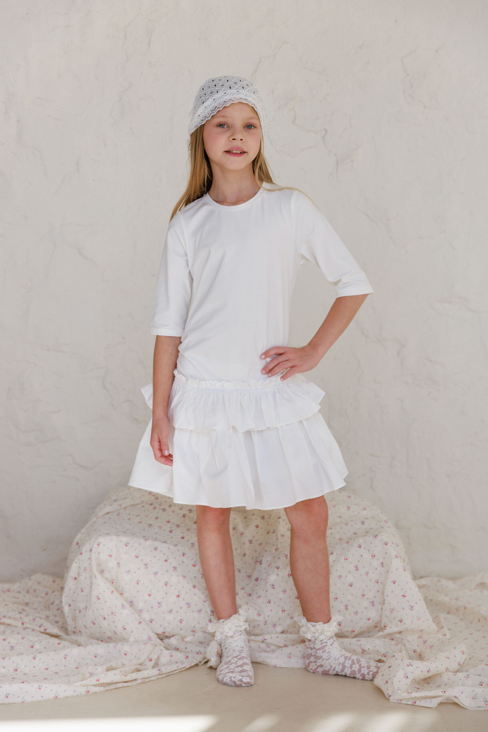 שמלת בייסיק לבנה עם מראה צעיר ורענן.