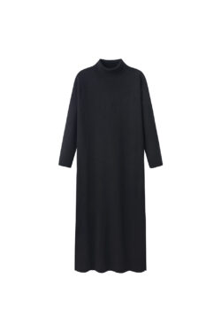 שמלת סריג בגזרת לוז ישרה עם צווארון חצי גולף