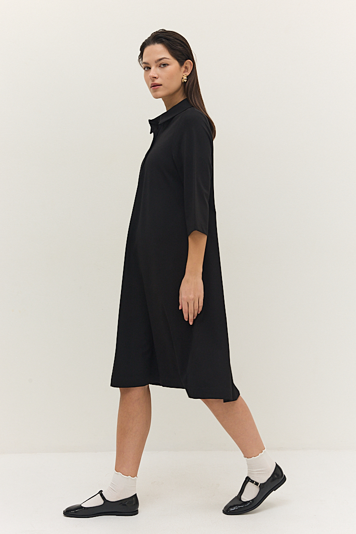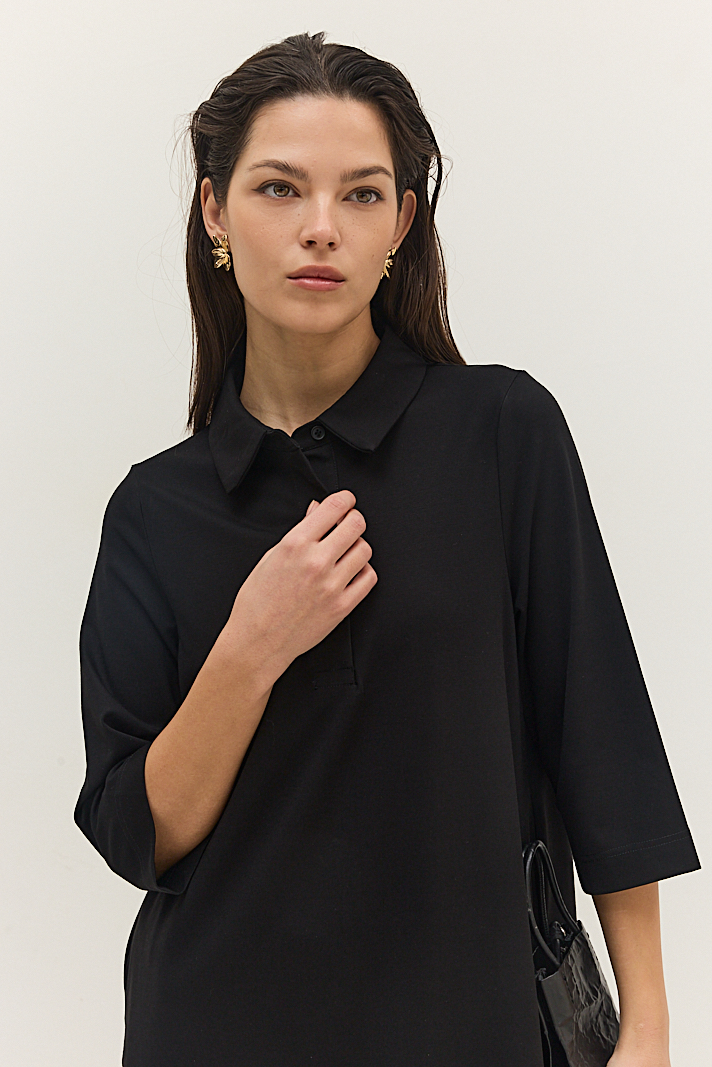 בעלת צווארון קלאסי וכפתורים בחזית, עם שרוולי 3/4.