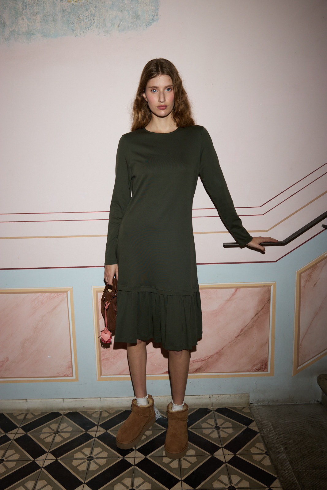 שמלת קומה לוגו CB ארוך זית