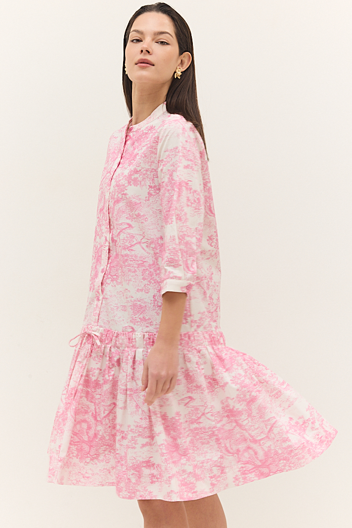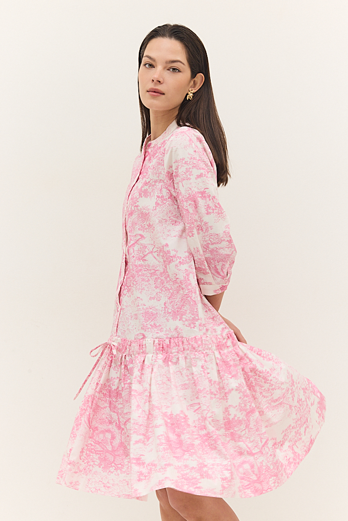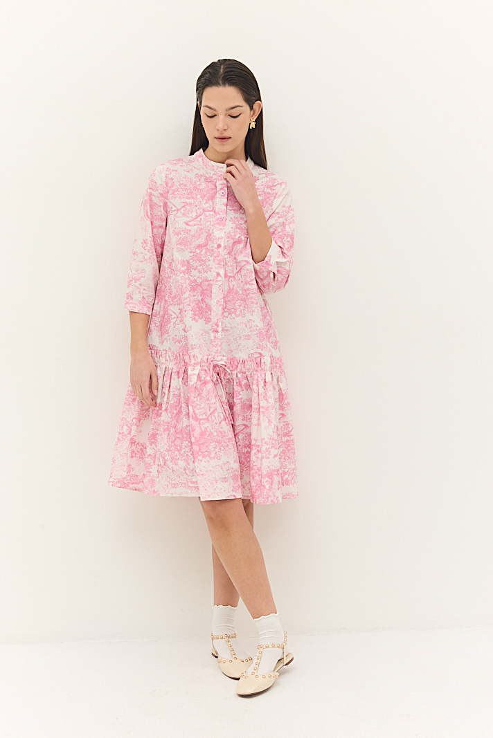 שמלה קצרה בגזרת A עם הדפס ורוד-לבן