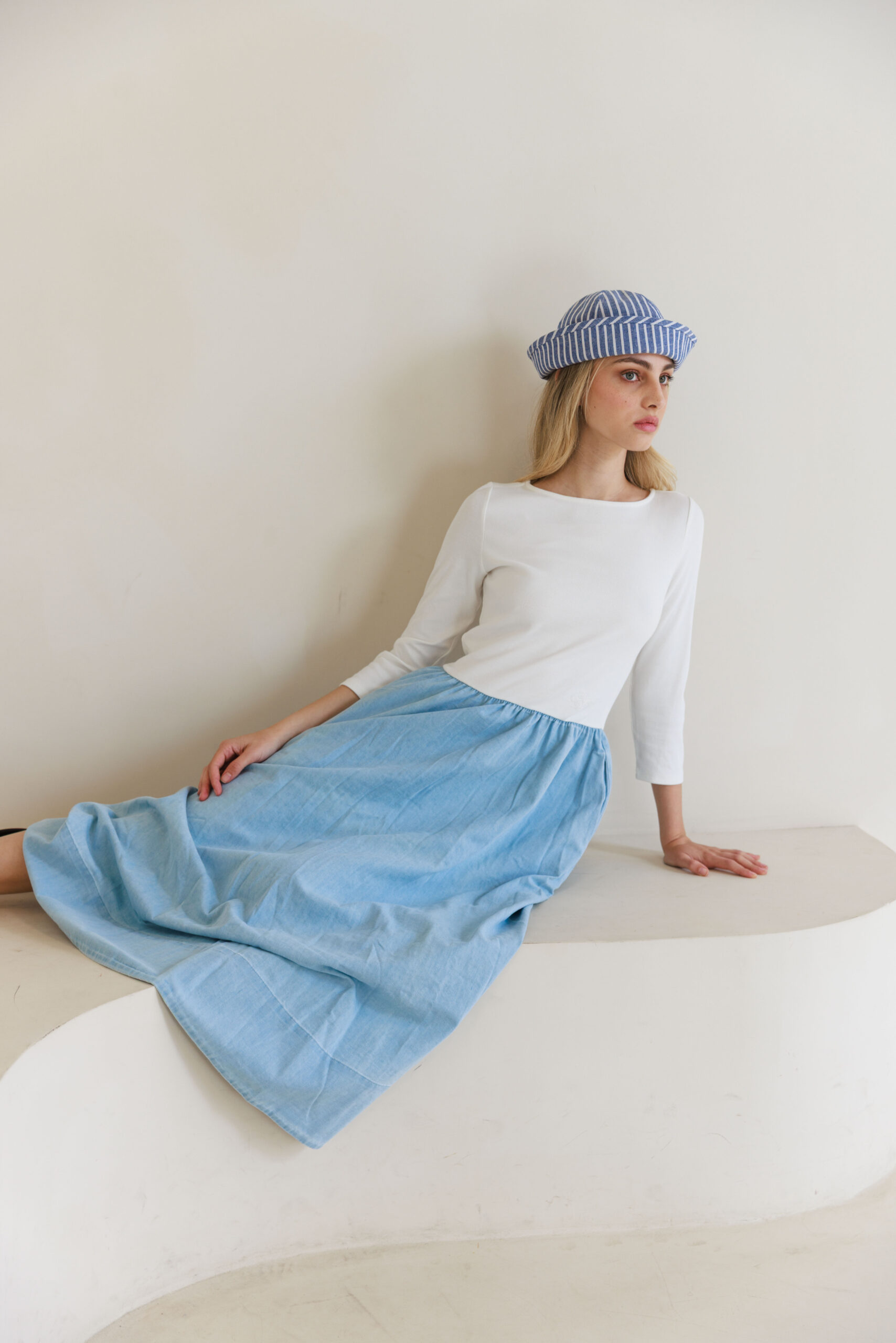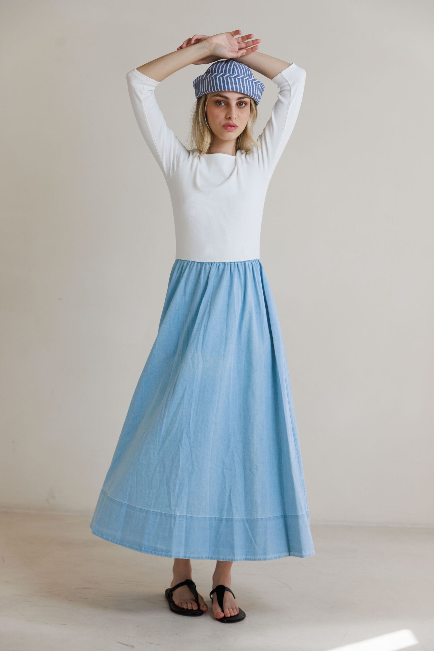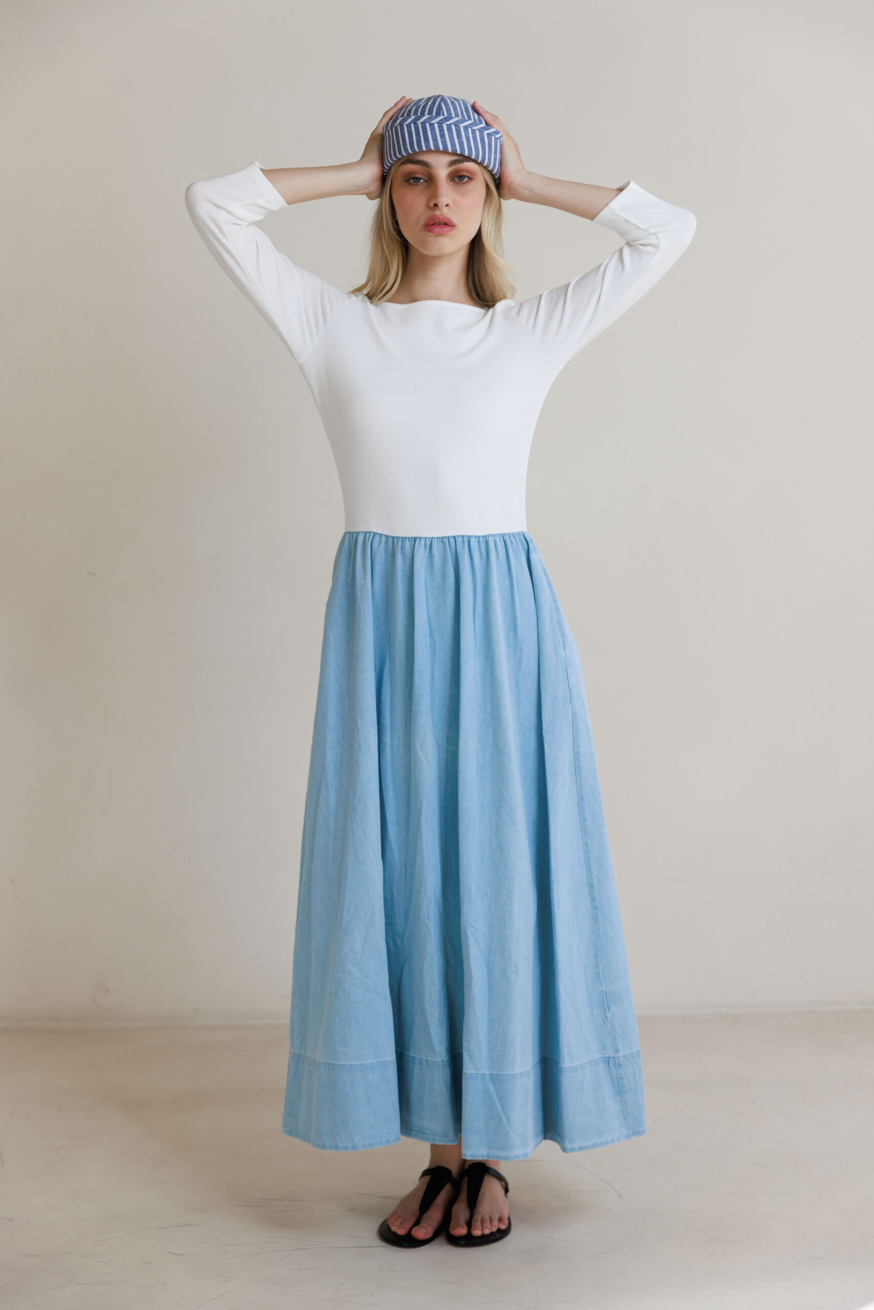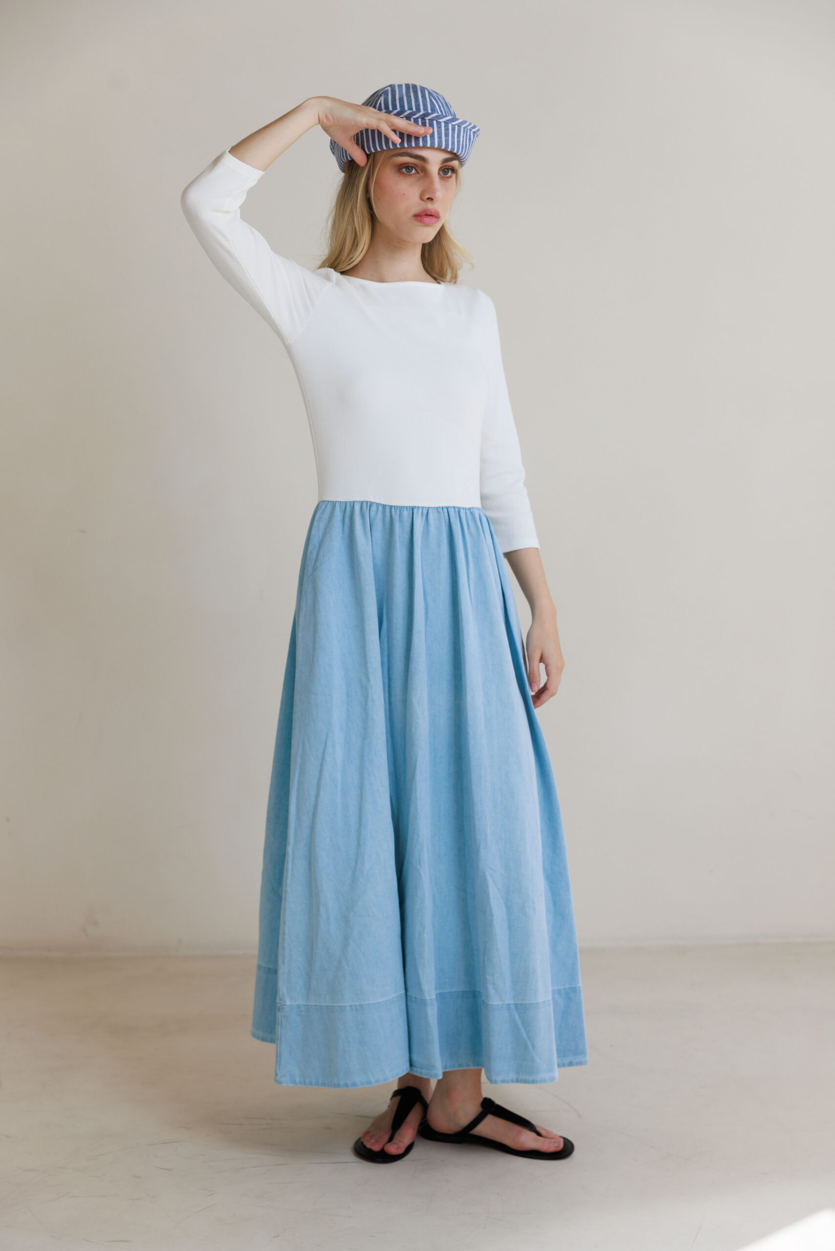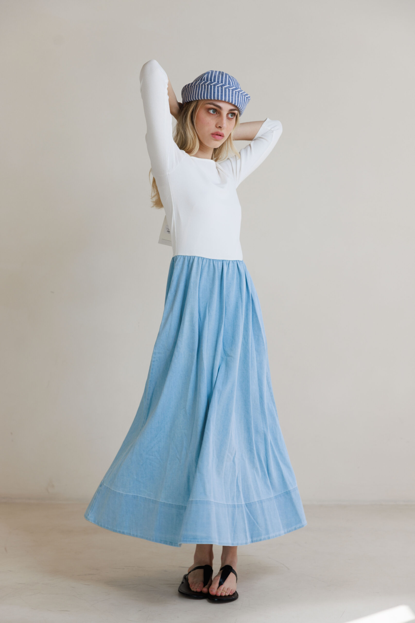 שמלת שילוב פסים תכלת