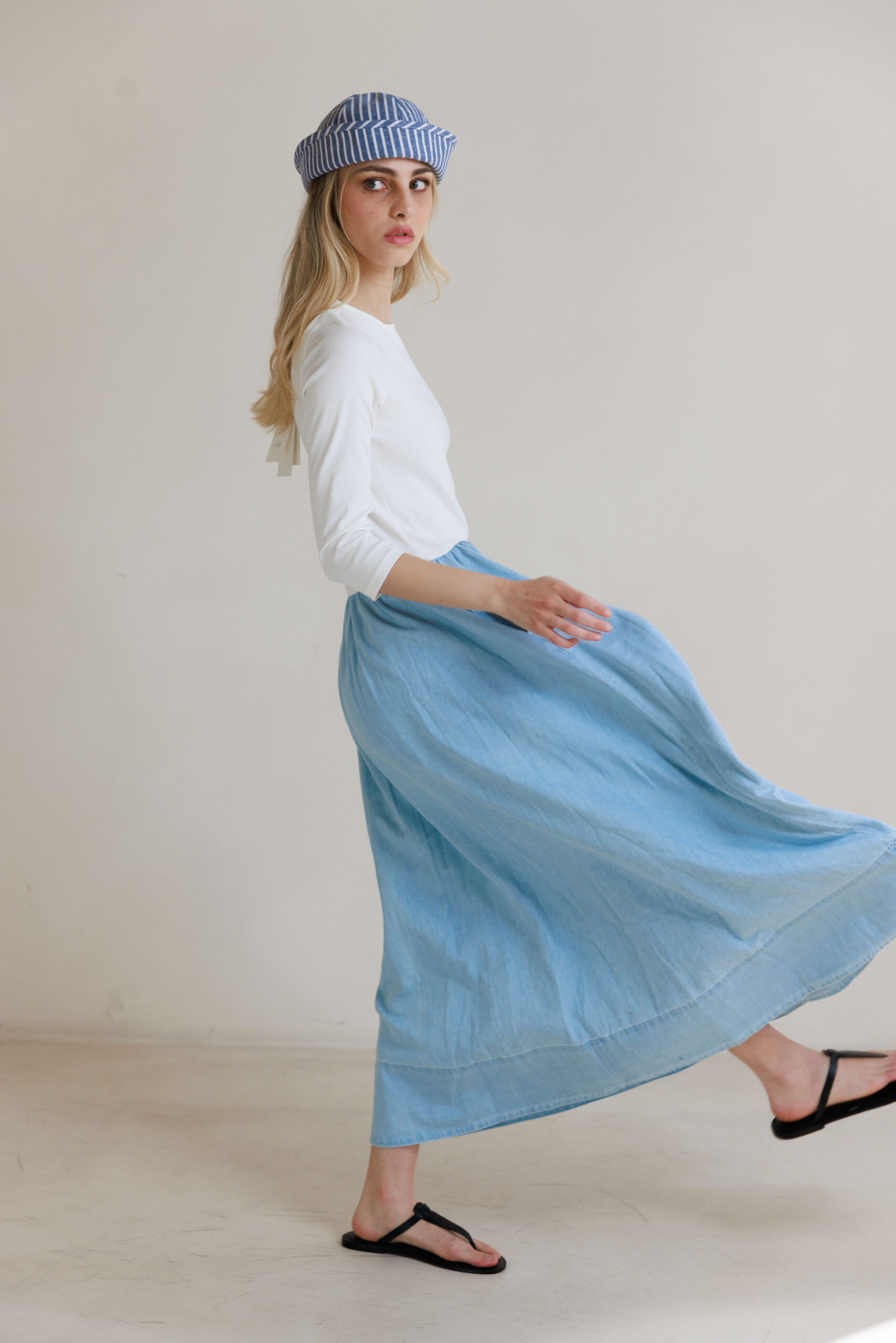 חלק תחתון בגזרת A מבד קליל בגוון כחול בהיר.