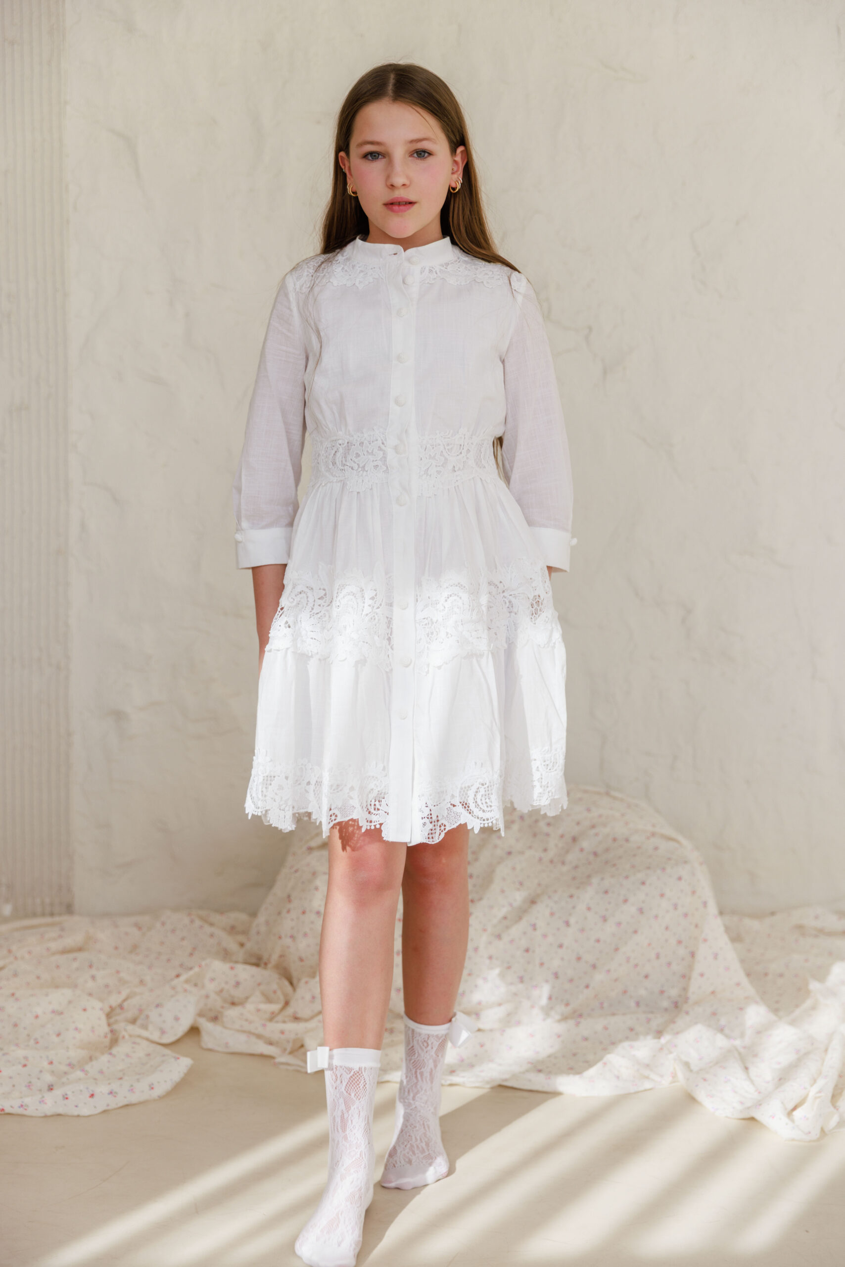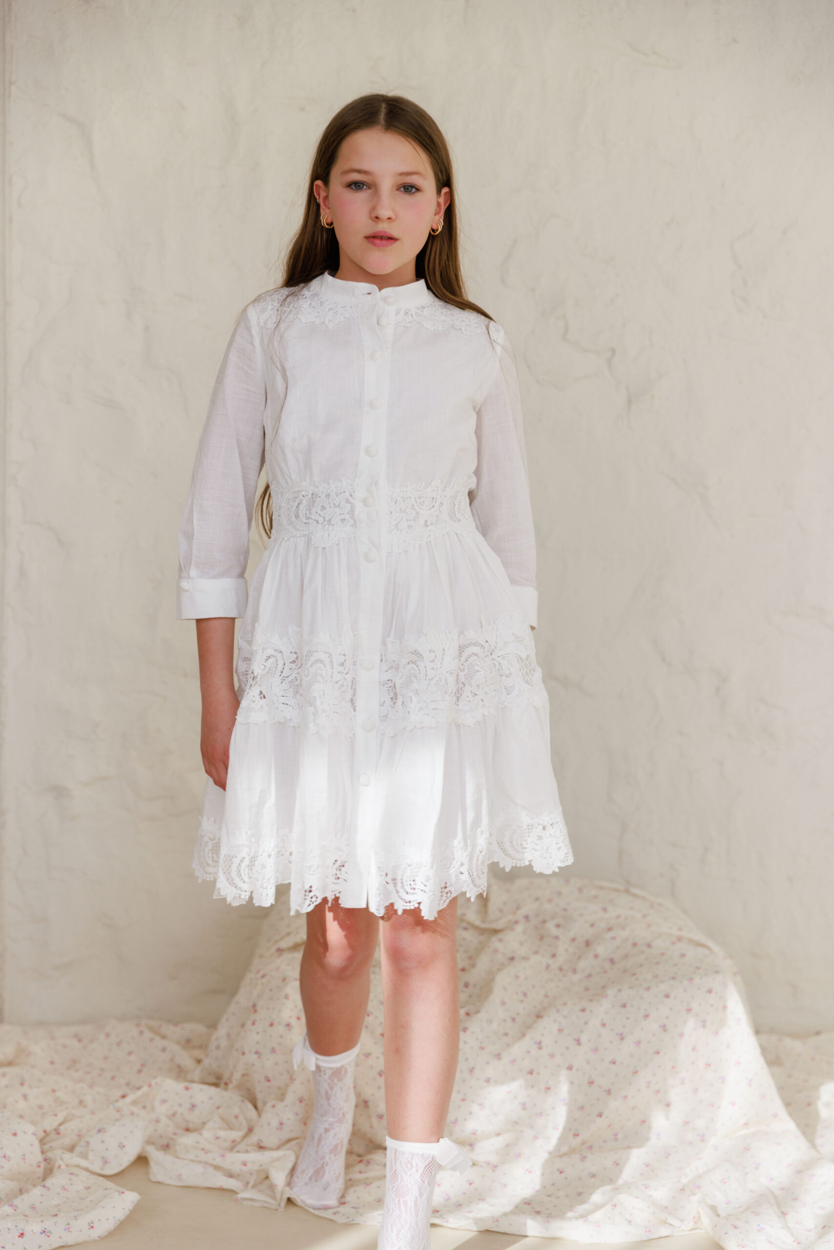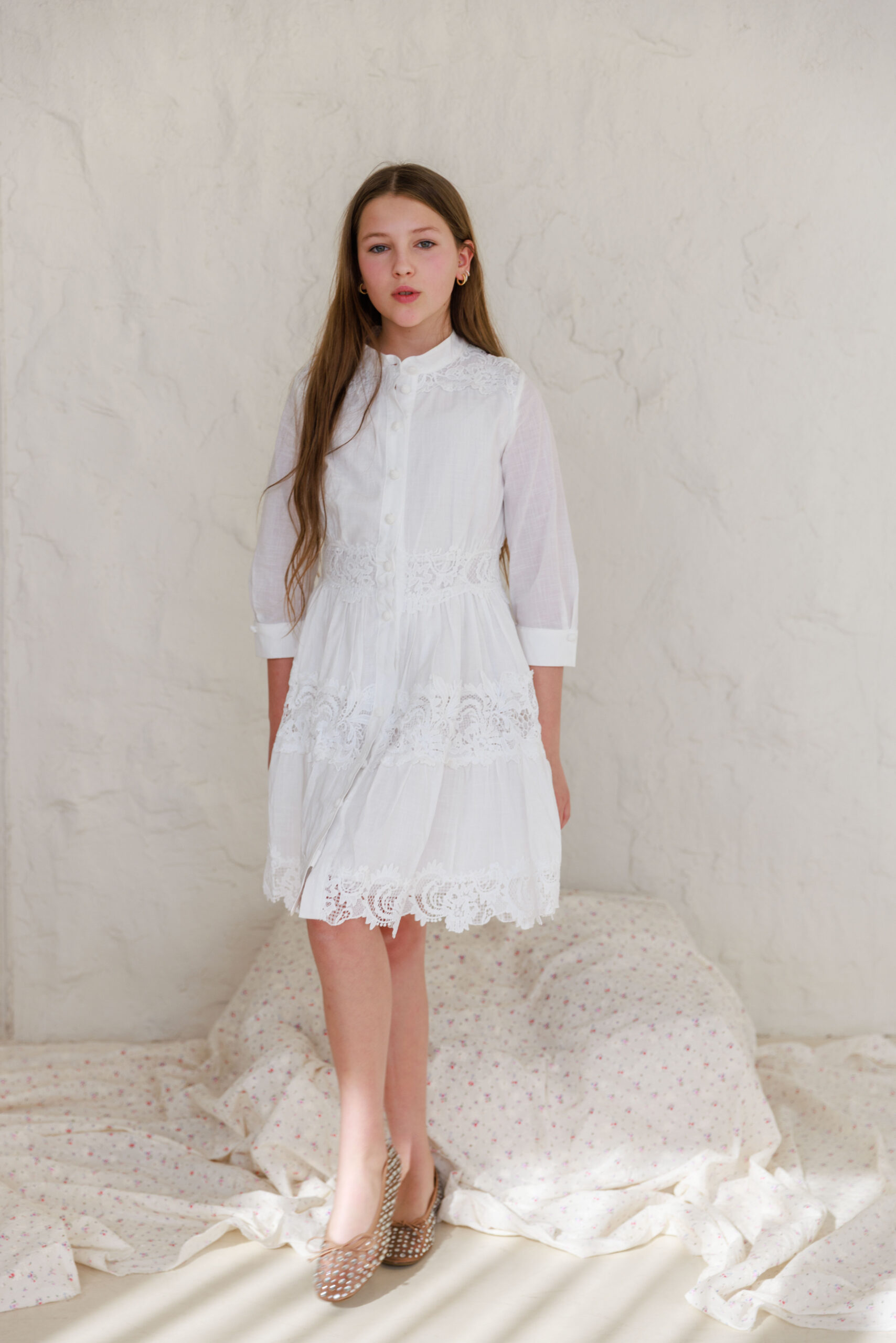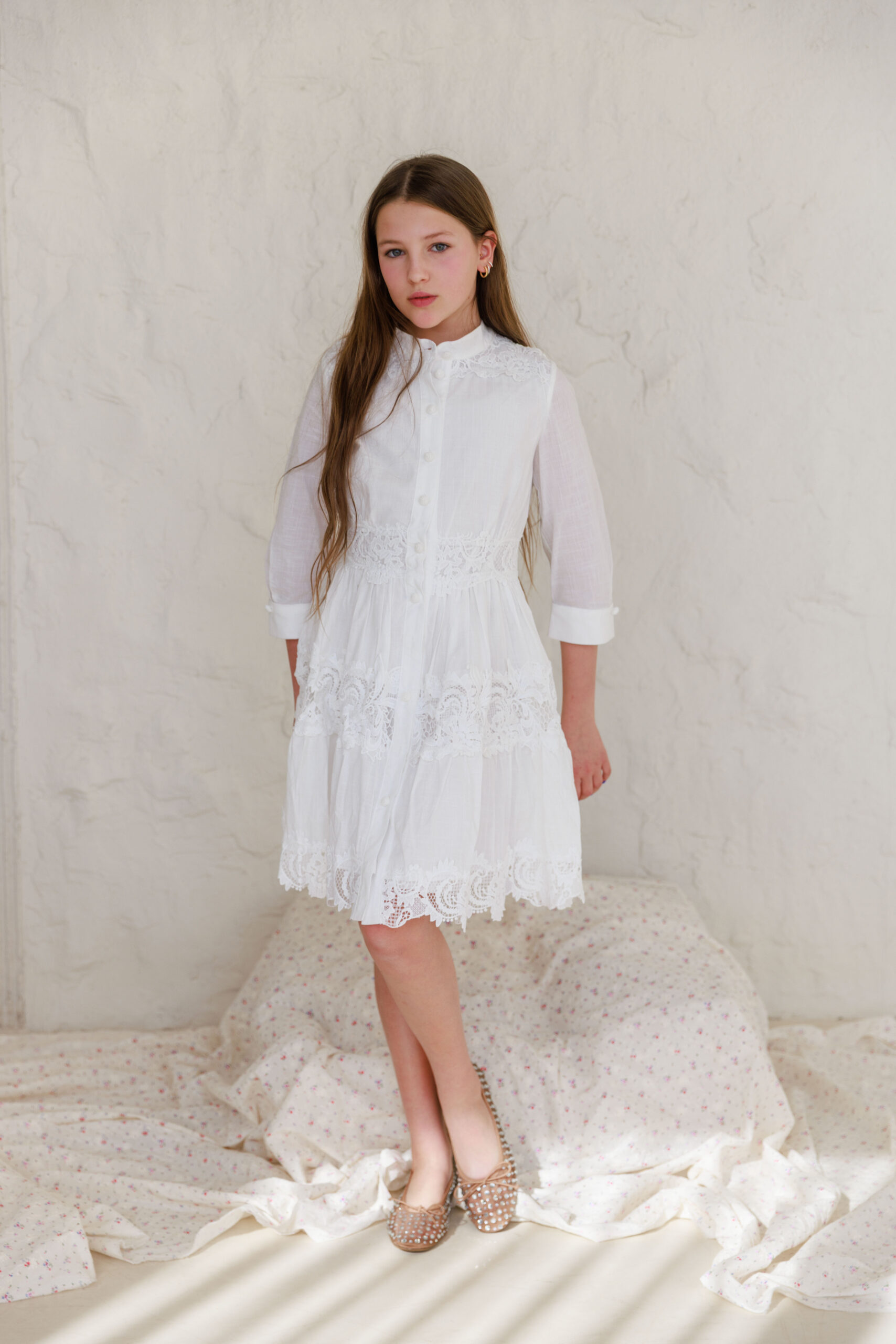 עם חיתוך במותן וחצאית קלילה עם כיווץ עדין היוצר נפח רך.